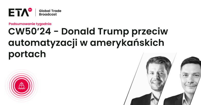 Zapraszamy do odsłuchania nowego odcinka podcastu ETA.fm, który jest podsumowaniem 50'tego tygodnia 2024 roku. Będzie też o Donaldzie Trumpie, który jest przeciwny automatyzacji na amerykańskich portach.