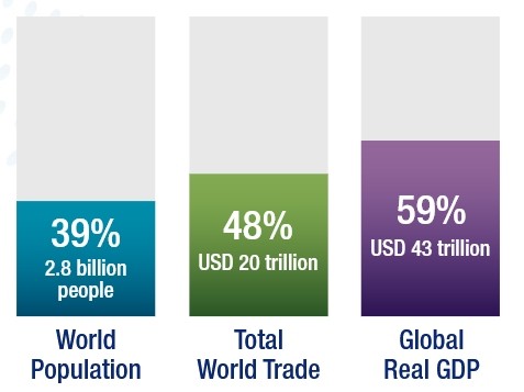 21 krajów APEC to obszar, który zamieszkuje około 3 miliardów ludzi. Jest to prawie 40% populacji zamieszkującej nasz glob. W regionie tym skupia się prawie połowa światowego handlu, który głownie odbywa się szlakami morskimi. Kraje APEC generują ponad 60% światowego PKB. Dominuje ChRL. Nie tylko w produkcji przemysłowej i dynamice tworzenia PKB.