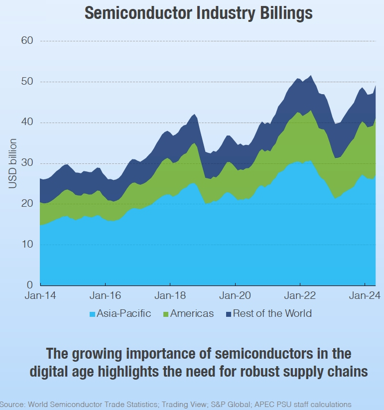 Członkowie APEC są również ważnym miejscem docelowym eksportu towarów ze Stanów Zjednoczonych. W regionie APEC ma miejsce około 60% wymiany handlowej USA. Aż siedmiu z 10 największych partnerów handlowych Stanów Zjednoczonych to członkowie APEC – informuje urząd statystyczny USA. W 2023 r. Stany Zjednoczone pełniły rolę gospodarza APEC 2023. Wtedy właśnie wypracowano koncepcję pogłębiania więzi gospodarczych z kluczowymi partnerami regionalnymi w oparciu gospodarkę innowacyjną i inkluzywną aktywność gospodarczą.