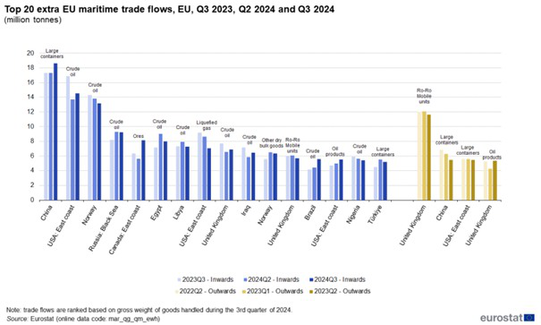Z importem gazu ziemnego z Rosji przez porty UE jest wciąż wiele kontrowersji. Bowiem, co prawda nie uruchomiono gazociągów przez Bałtyk, ograniczono import innymi rurociągami, ale sprowadzano gaz przez terminale morskie. Przemysł rafineryjny, chemiczny i energetyka krajów Unii Europejskiej nie zmniejszyły istotnie popytu na surowce energetyczne. Dywersyfikacja dostawców sprawiła, że wzrosła rola portów morskich, a w nich terminali paliwowych i gazowych oraz masowych.