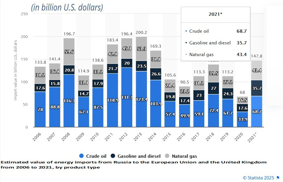 Przez wiele lat kraje UE były mocno zależne od importu rosyjskich surowców energetycznych. W latach 2008, 2012 i 2013 kraju UE wydawały rekordowe kwoty na surowce energetyczne sprowadzane z Rosji. Przypomnijmy, że w przypadku ropy naftowej i produktów, UE wprowadziła zakaz na import rosyjskiej ropy naftowej drogą morską wszedł w życie 5 grudnia 2022 r. Embargo na produkty rafineryjne wszedł w życie praktycznie 5 lutego 2023 r. Wpływ tych decyzji był widoczny z pewnym opóźnieniem w portach morskich i rafineriach, w przemyśle chemicznym i elektrowniach oraz ciepłowniach. Pod wpływem sankcji, Rosja jako bezpośredni dostawca ropy i gazu wypadła z czołówki dostawców. Wysokie wolumeny dostaw praktycznie wszystkich produktów energetycznych od 2022 r. wyraźnie zmalały.