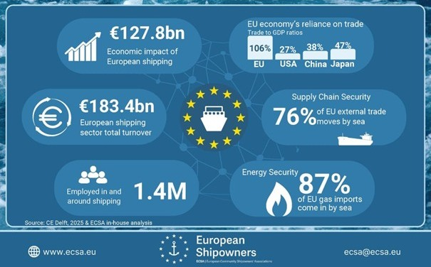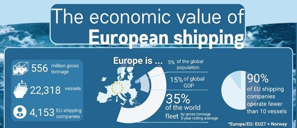 Europejscy operatorzy statków i terminali portowych, logistycy i agenci morscy zapewniają bezpieczeństwo żywnościowe i energetyczne Europie. Ale udział flot europejskich w globalnym handlu morskim systematycznie maleje. Flota kontrolowana przez armatorów mających siedziby w Europie, biorąc pod uwagę UE-27 i Norwegię, stanowi 33,6% światowego tonażu brutto (GT).