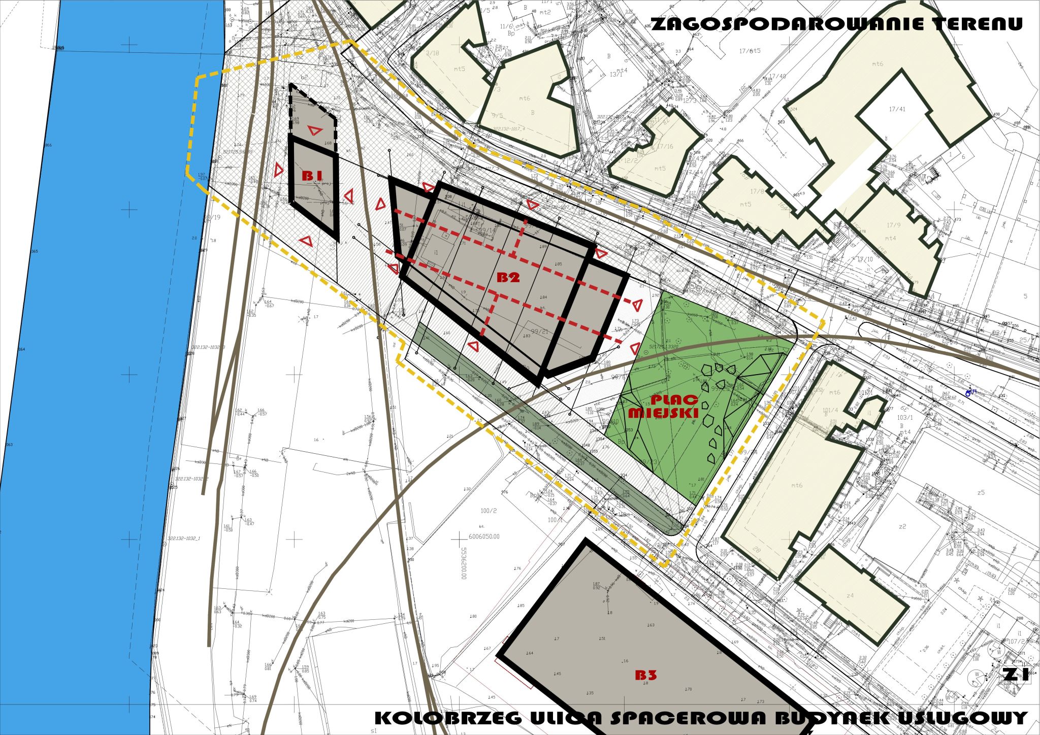 Trzy wspomniane budynki mają stworzyć swoisty bufor między Portem Handlowym, a terenami przyportowymi. W miejscu obecnego, tymczasowego parkingu, między Food Hall, a budowanym parkingiem wielopoziomowym, powstanie przestrzeń zagospodarowana m.in. jako plac z fontanną wraz z małą architekturą i zielenią, które w przyszłości stworzą strefę porównywalną z parkiem.