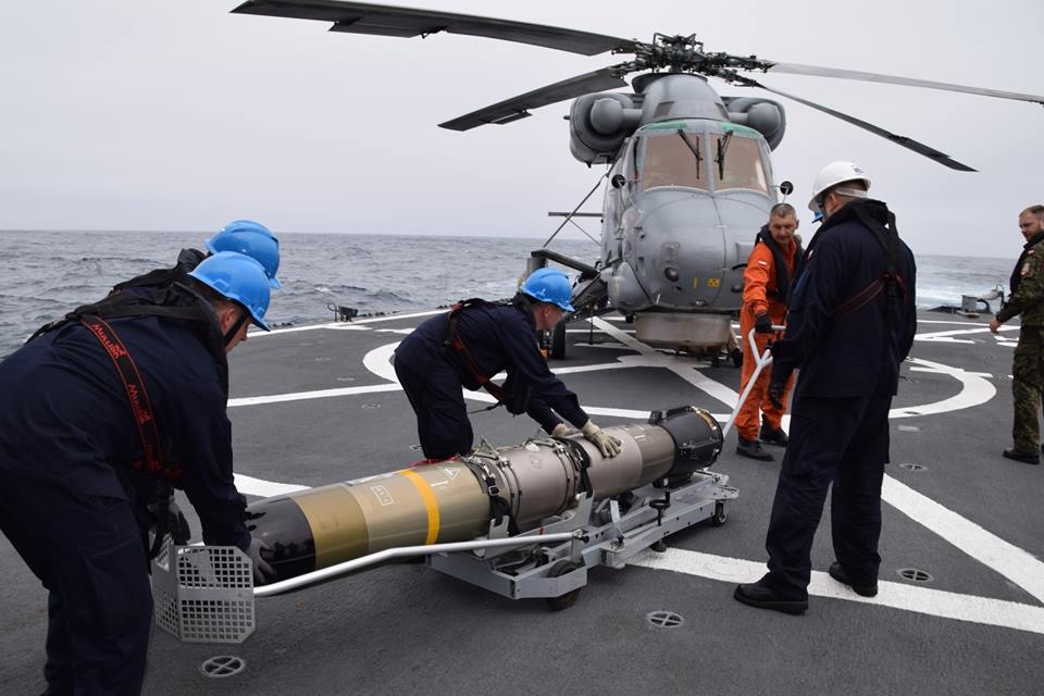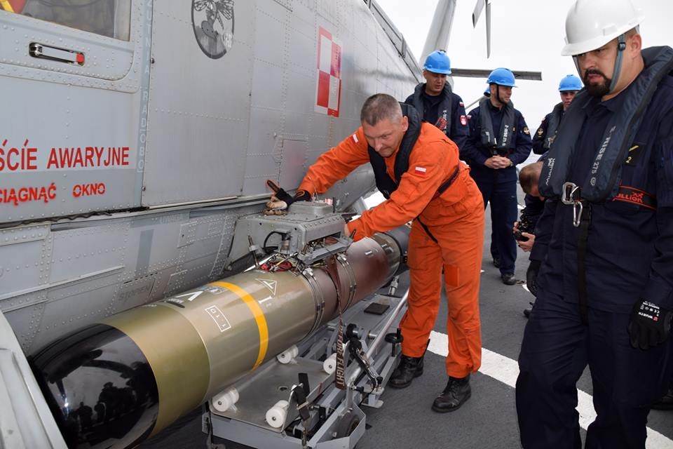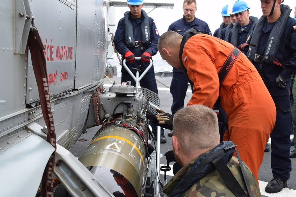Strona główna Marynarka Wojenna, Bezpieczeństwo Morskie, Ratownictwo Z pokładu ORP Kościuszko: uzbrajanie śmigłowca SH-2G w bojową wersję torpedy MU-90