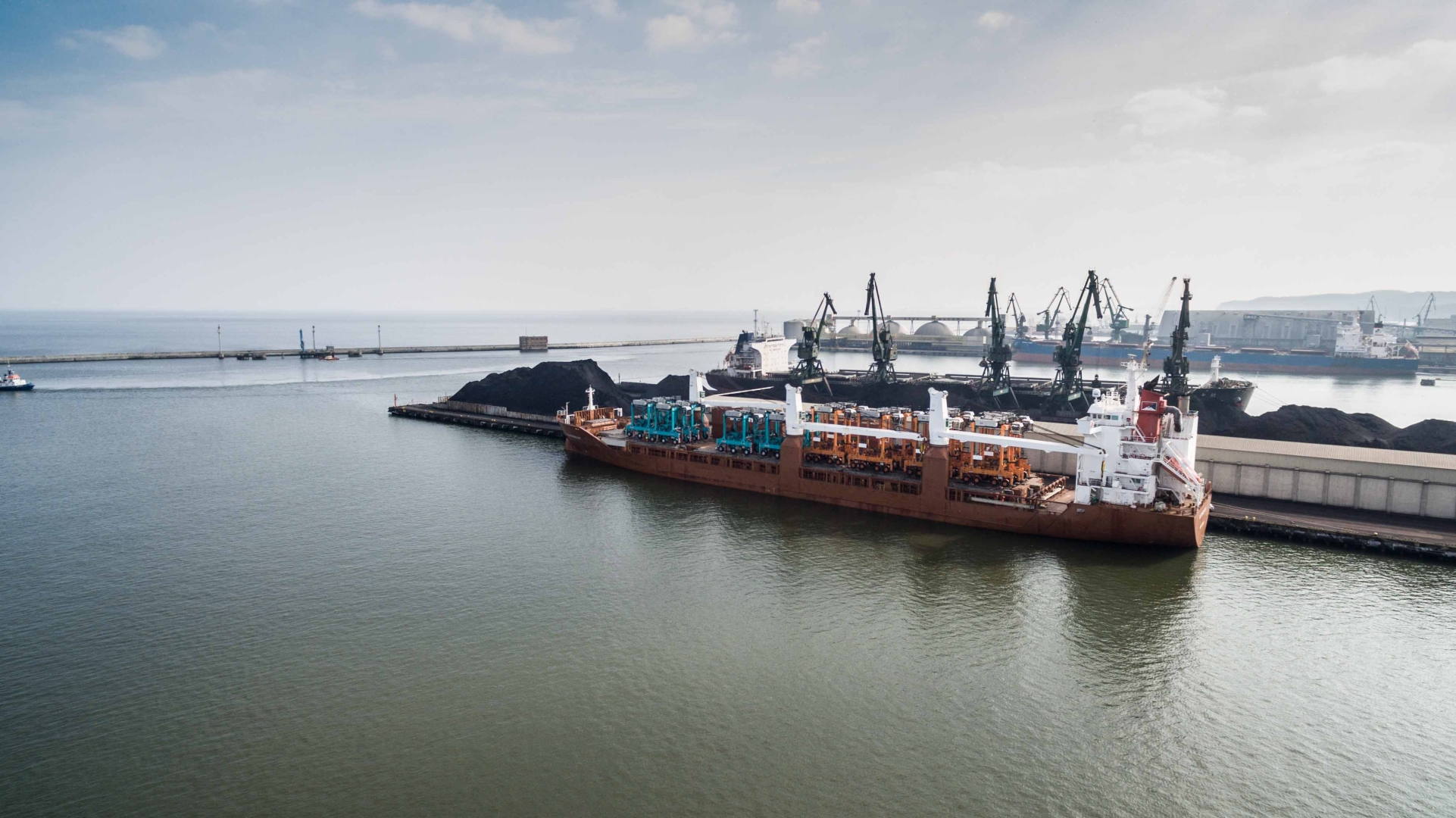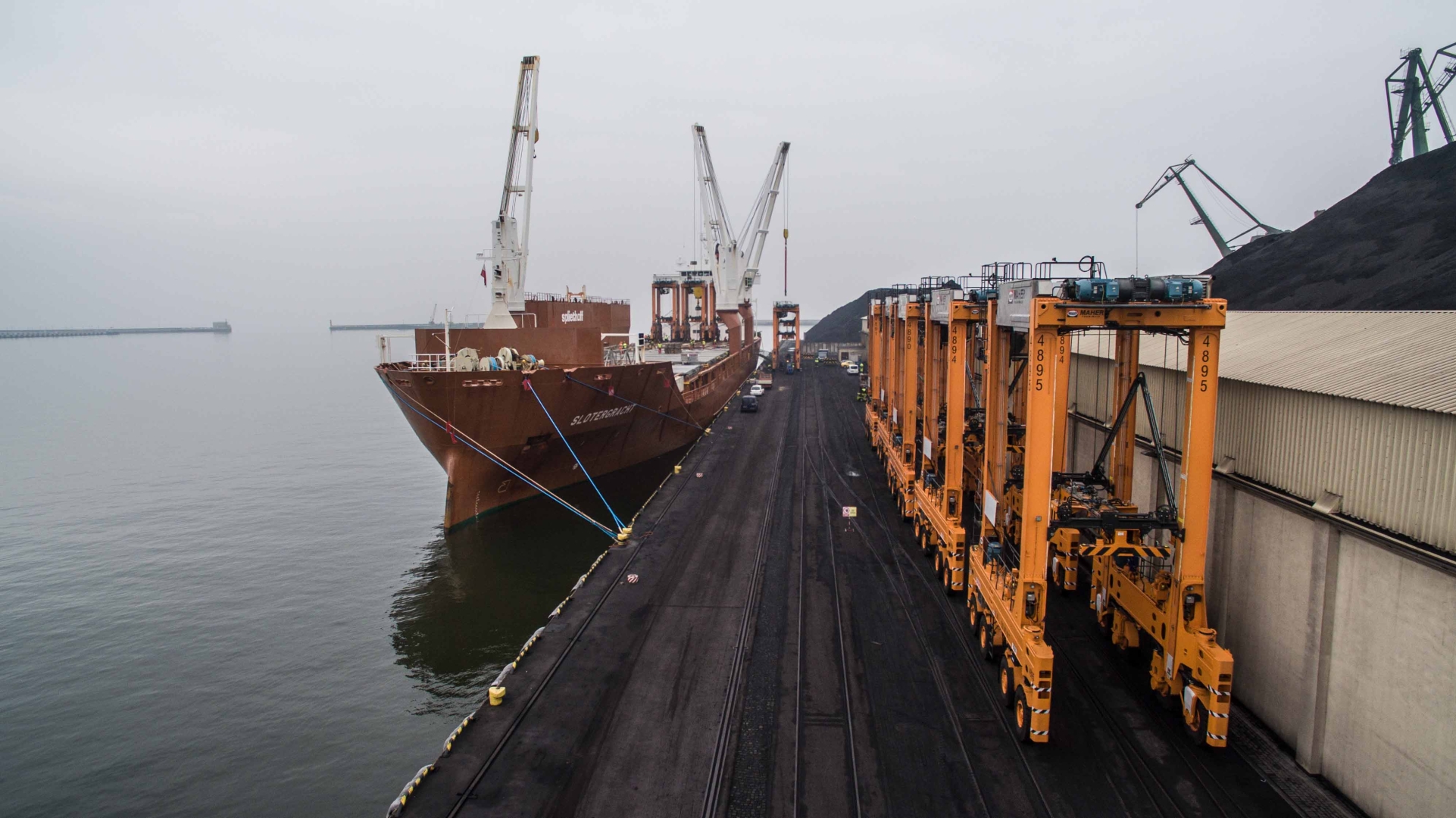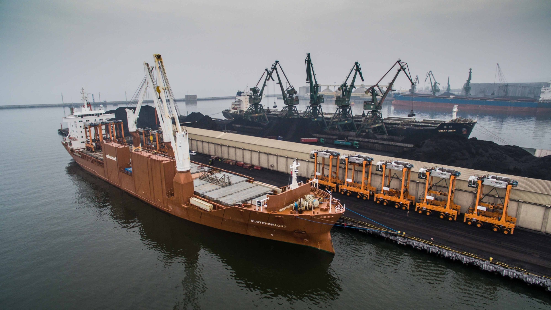 Polski masowiec zderzył się z suwnicą i żurawiami