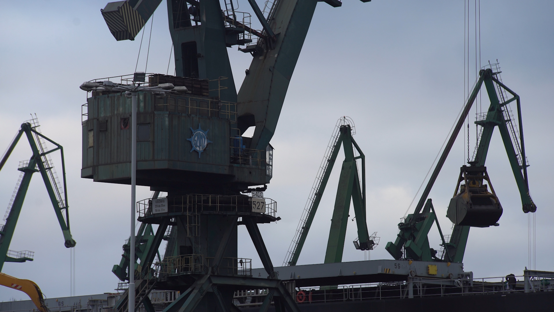Polski masowiec zderzył się z suwnicą i żurawiami