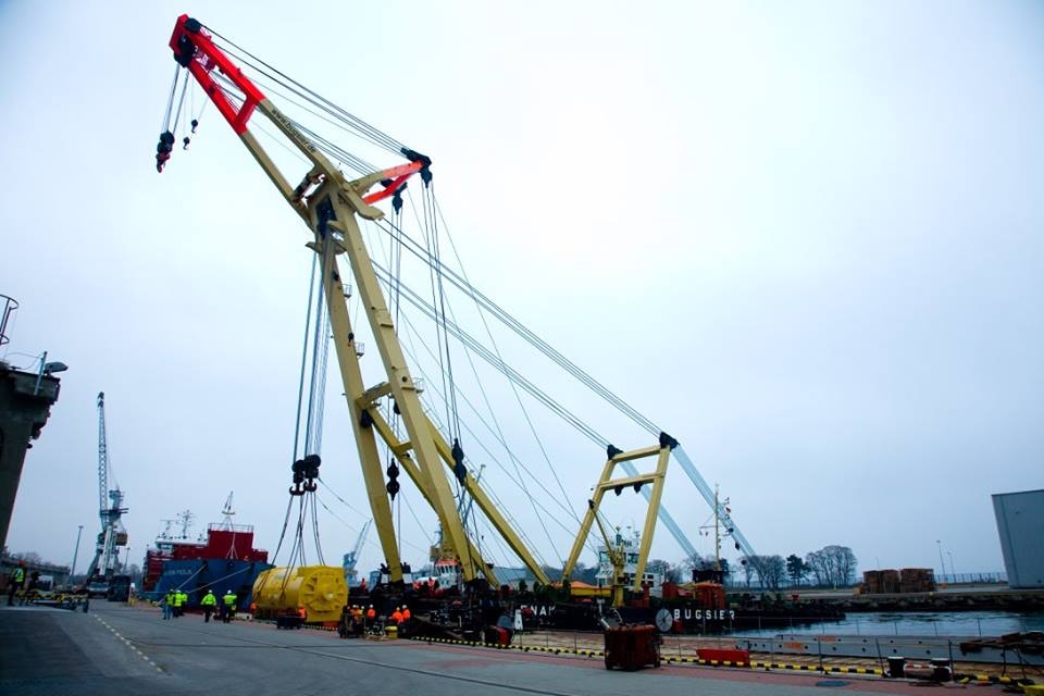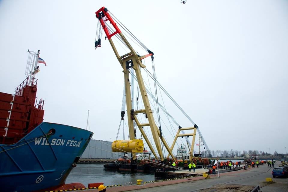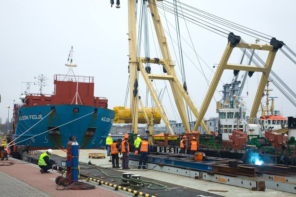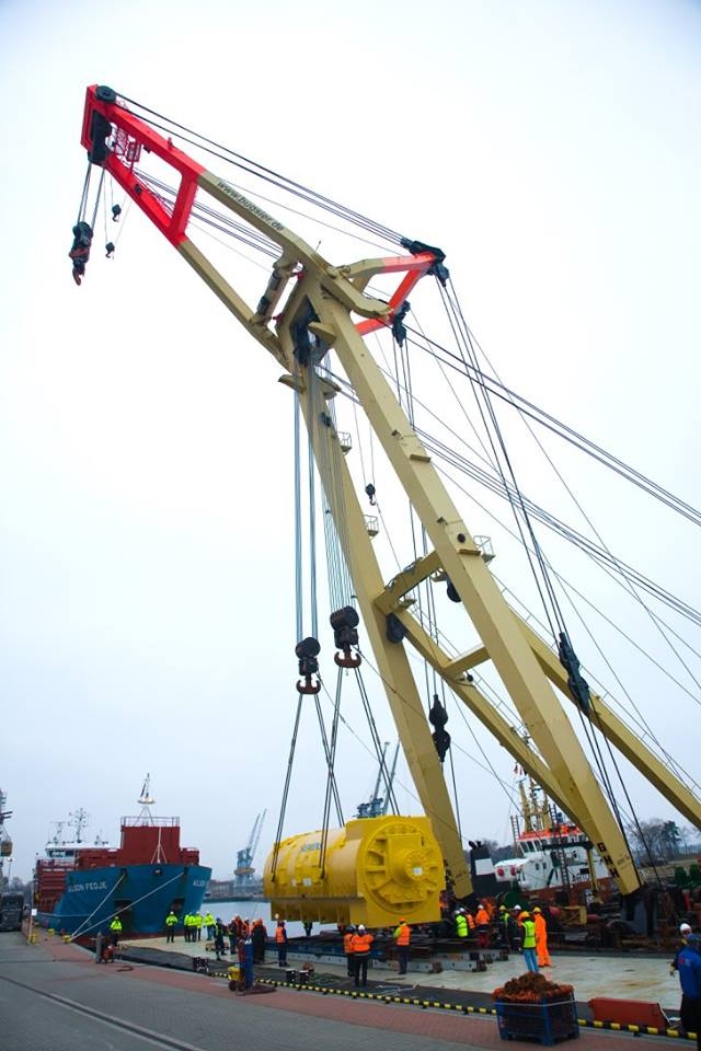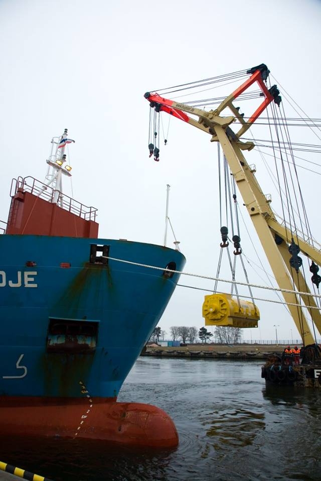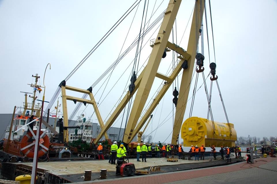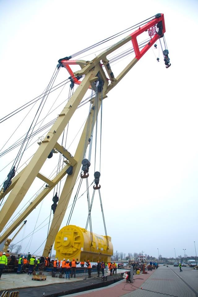 Przeładunek sztuki ciężkiej o wadze 456 ton ze statku na barkę przy Wolnym Obszarze Celnym w Porcie Gdańsk. W operacji użyto dźwigu pływającego ENAK o udźwigu 600 ton.