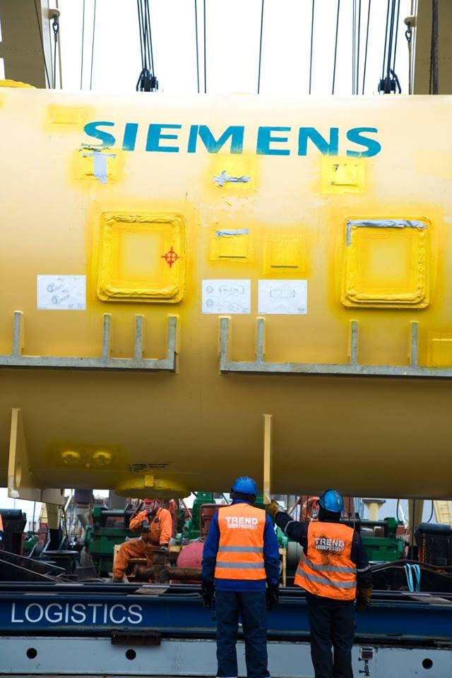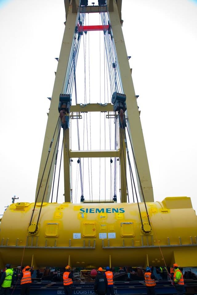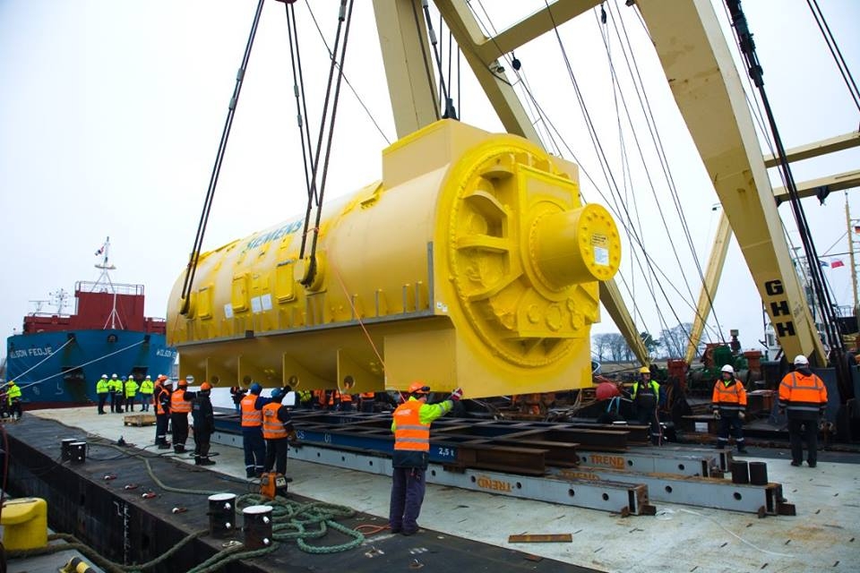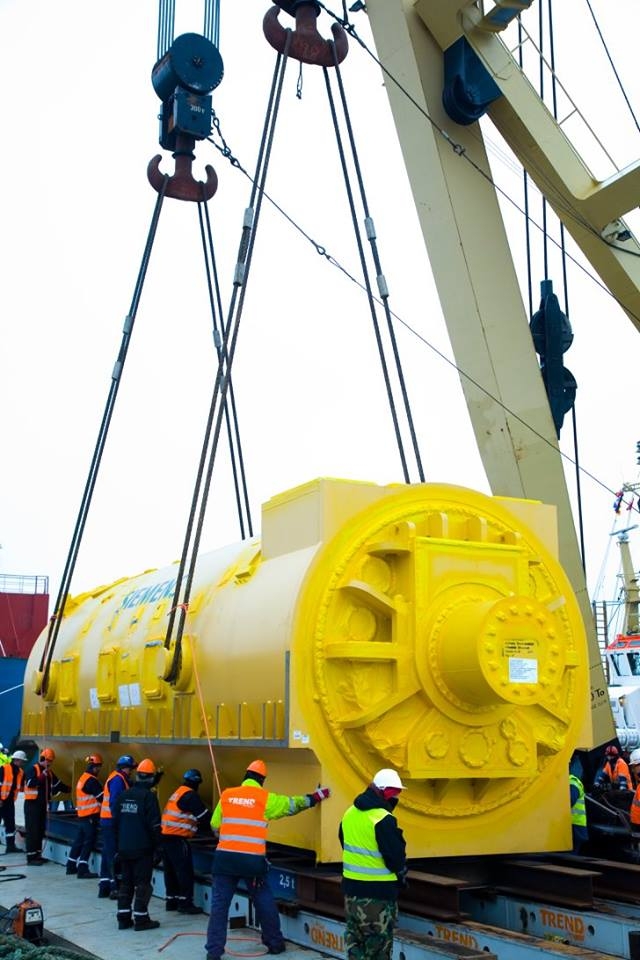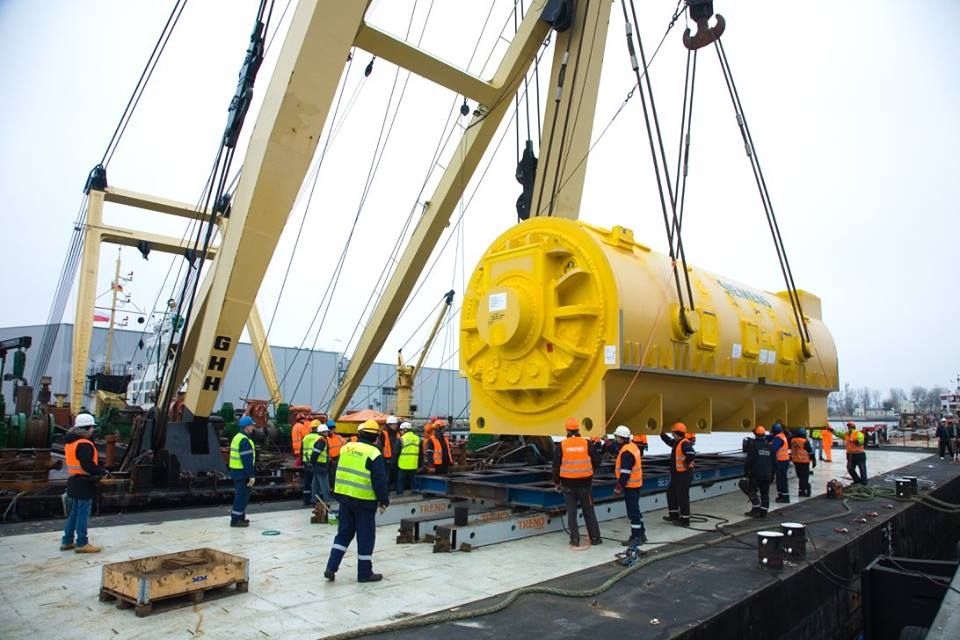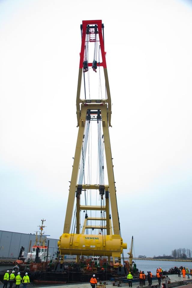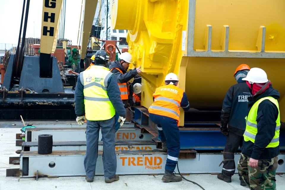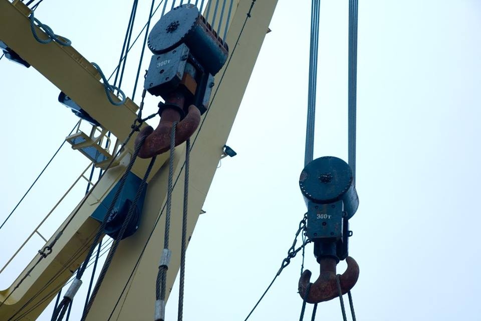 Przeładunek sztuki ciężkiej o wadze 456 ton ze statku na barkę przy Wolnym Obszarze Celnym w Porcie Gdańsk. W operacji użyto dźwigu pływającego ENAK o udźwigu 600 ton.