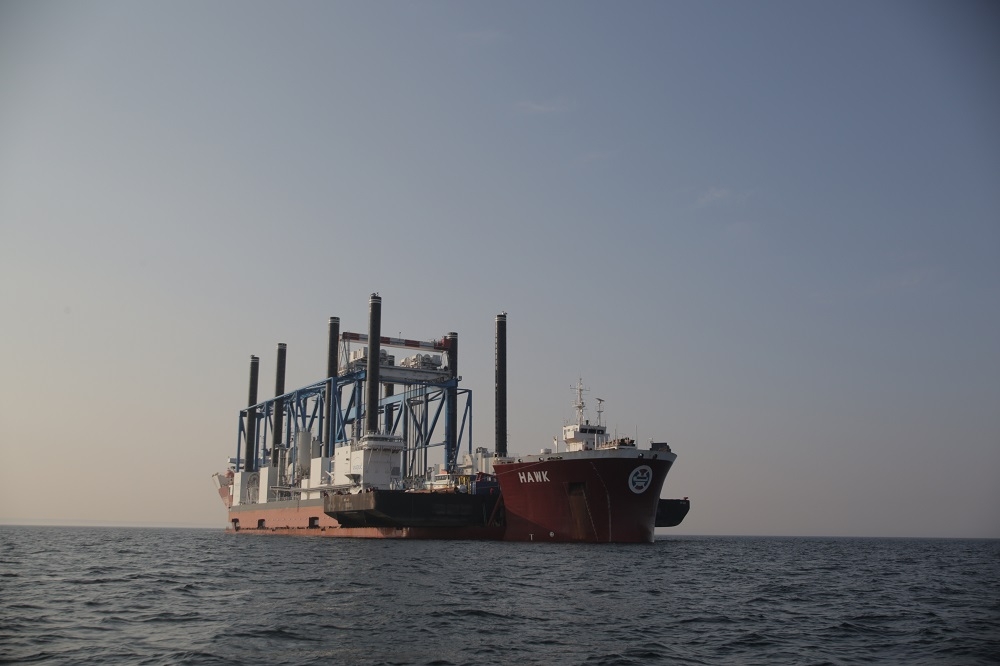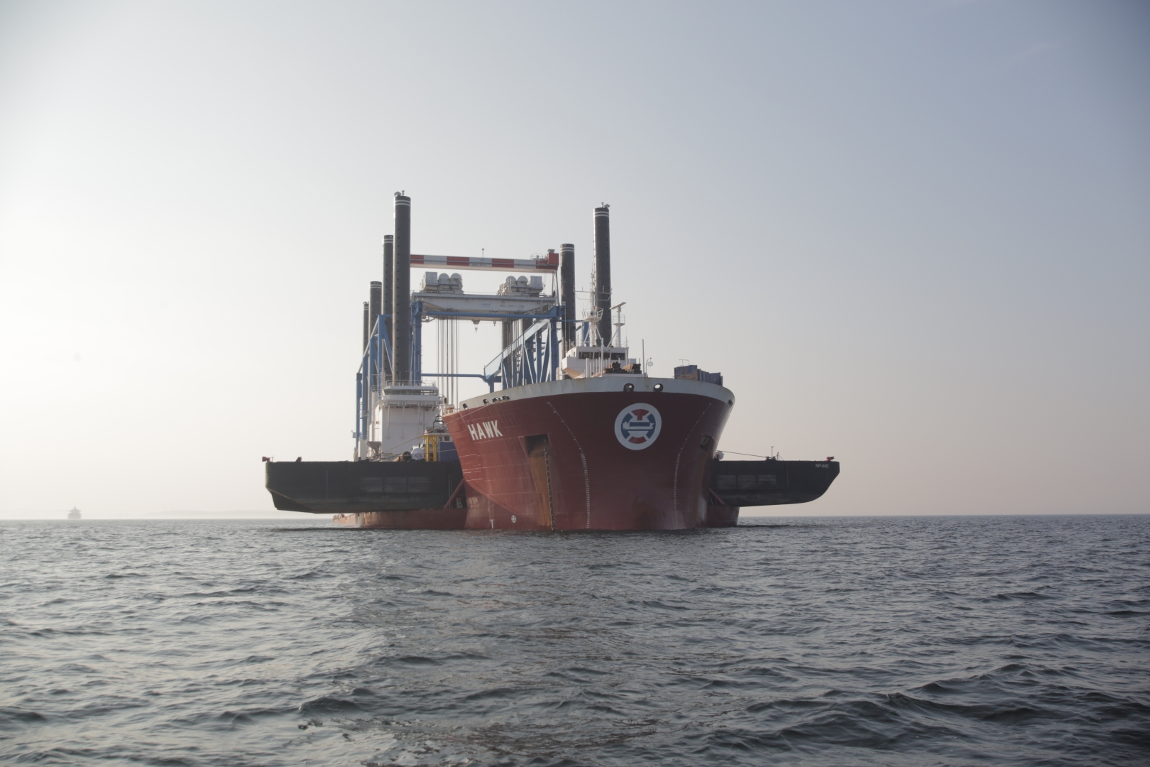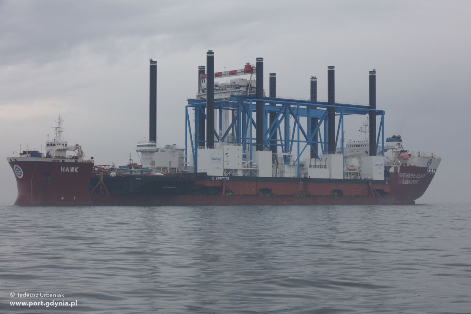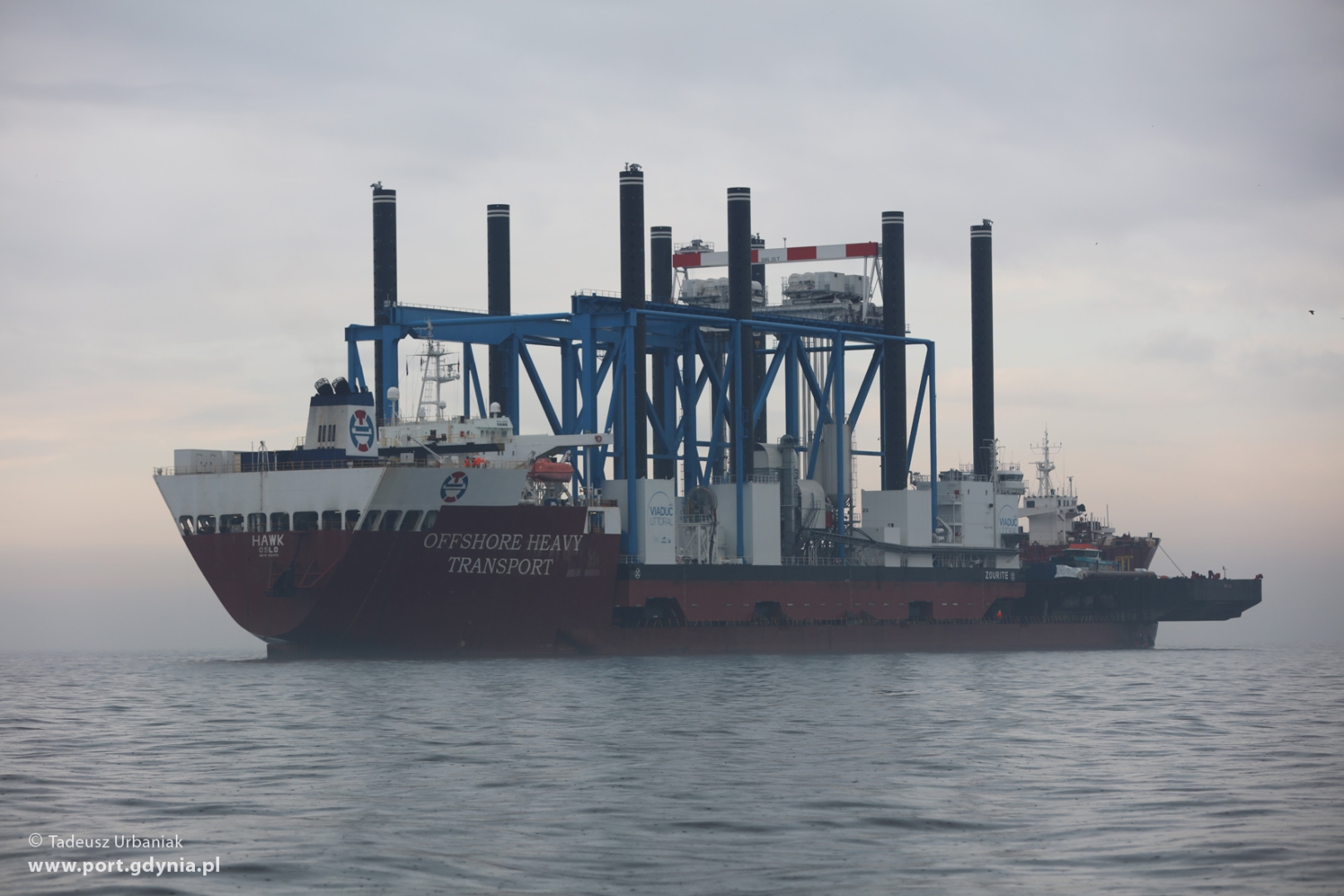 Cztery dni po uroczystym przekazaniu armatorowi barki Zourite, w poniedziałek (28.03) na Zatoce Gdańskiej odbyła się operacja jej załadunku na ciężarowiec wpływny ciężarowiec - flo-flo heavy-lift vessel - Hawk. Oprócz barki na pokład Hawka załadowano również barko-ponton NP-440 oraz holownik Sound Supplier.