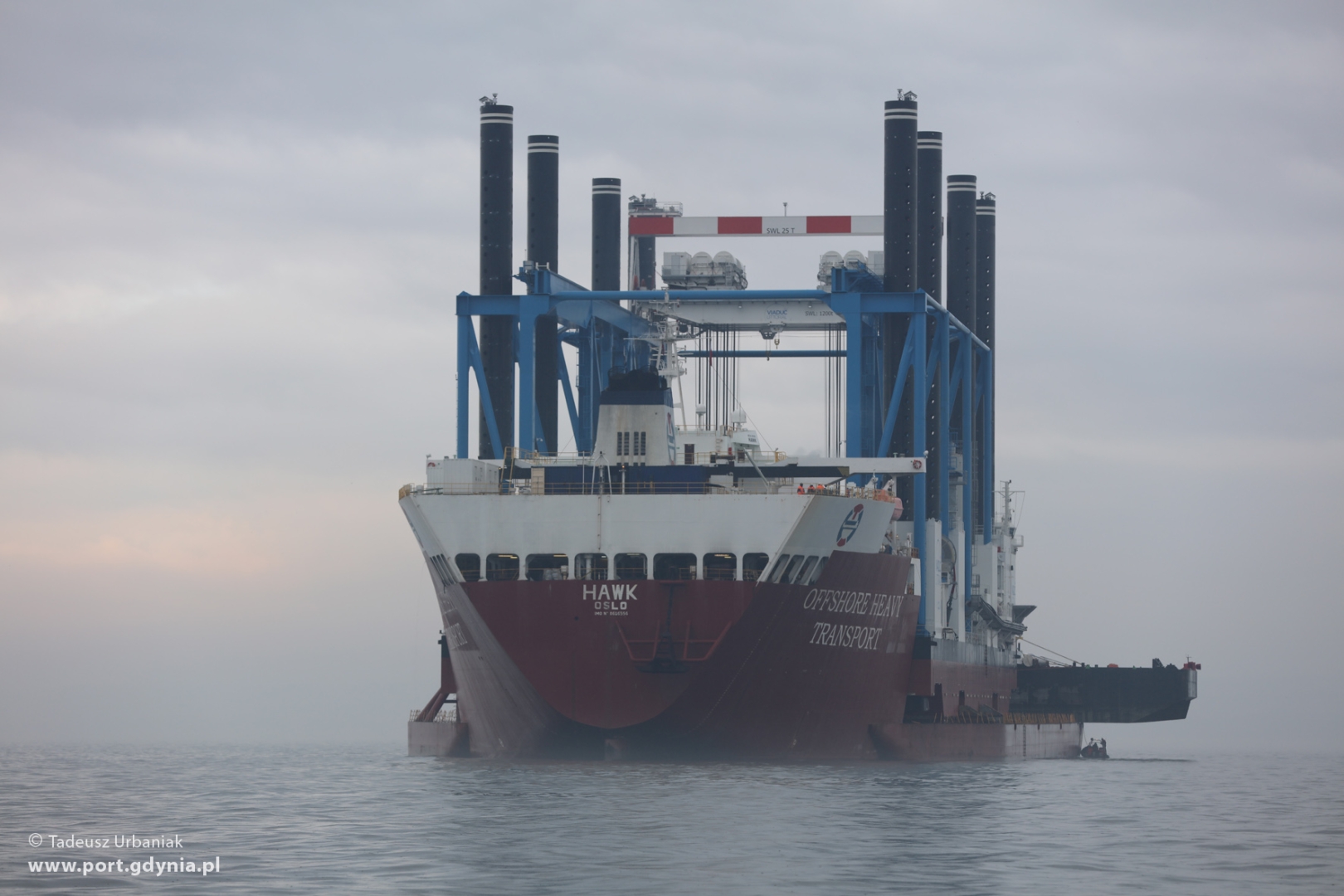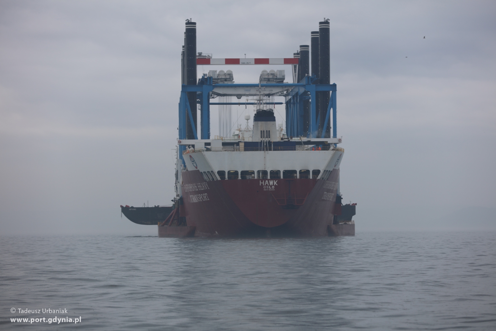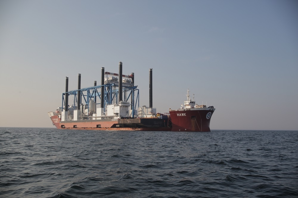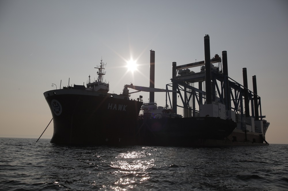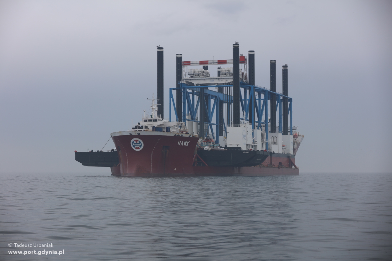 Cztery dni po uroczystym przekazaniu armatorowi barki Zourite, w poniedziałek (28.03) na Zatoce Gdańskiej odbyła się operacja jej załadunku na ciężarowiec wpływny ciężarowiec - flo-flo heavy-lift vessel - Hawk. Oprócz barki na pokład Hawka załadowano również barko-ponton NP-440 oraz holownik Sound Supplier.