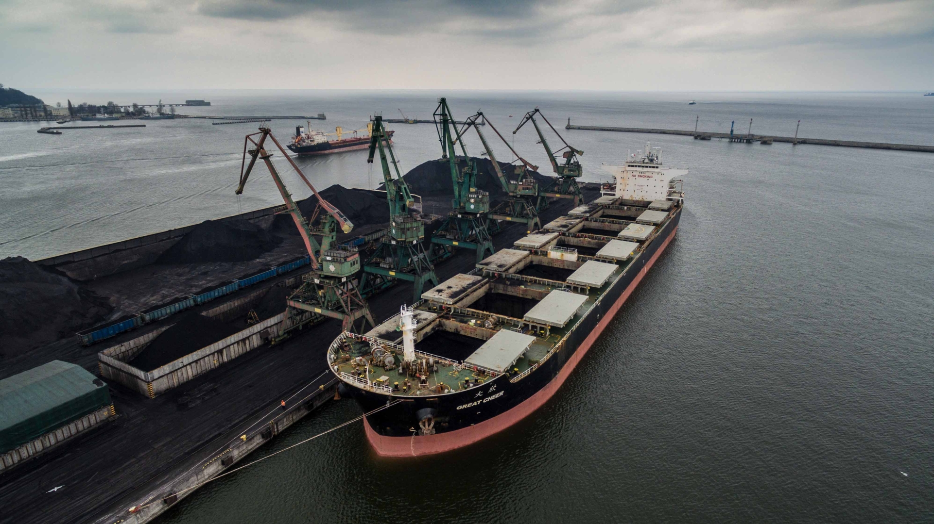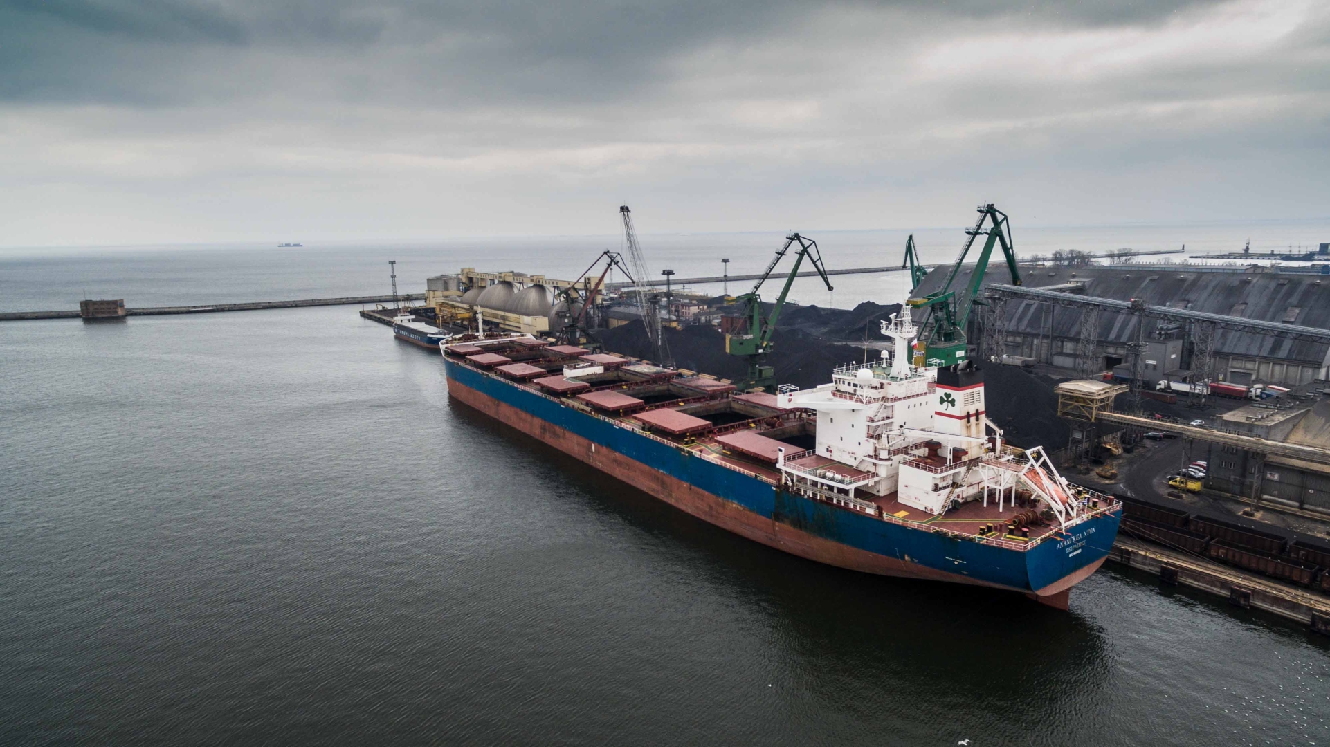 Kanadyjski węgiel koksujący w gdyńskim porcie. 74 800 t tego surowca przypłynęło do Morskiego Terminalu Masowego Gdynia we wtorek wieczorem. Obecnie przy Nabrzeżu Holenderskim trwa rozładunek.