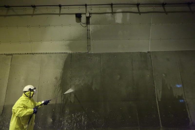 Umyto pionowe ściany (do wysokości 3,2 metra), a także wyposażenie tunelu i chodniki. Wszystko w pełni ekologiczne, bowiem zmywanie odbywało się bez użycia jakichkolwiek środków chemicznych. 20 osób sprzątających miało do dyspozycji myjki ciśnieniowe.