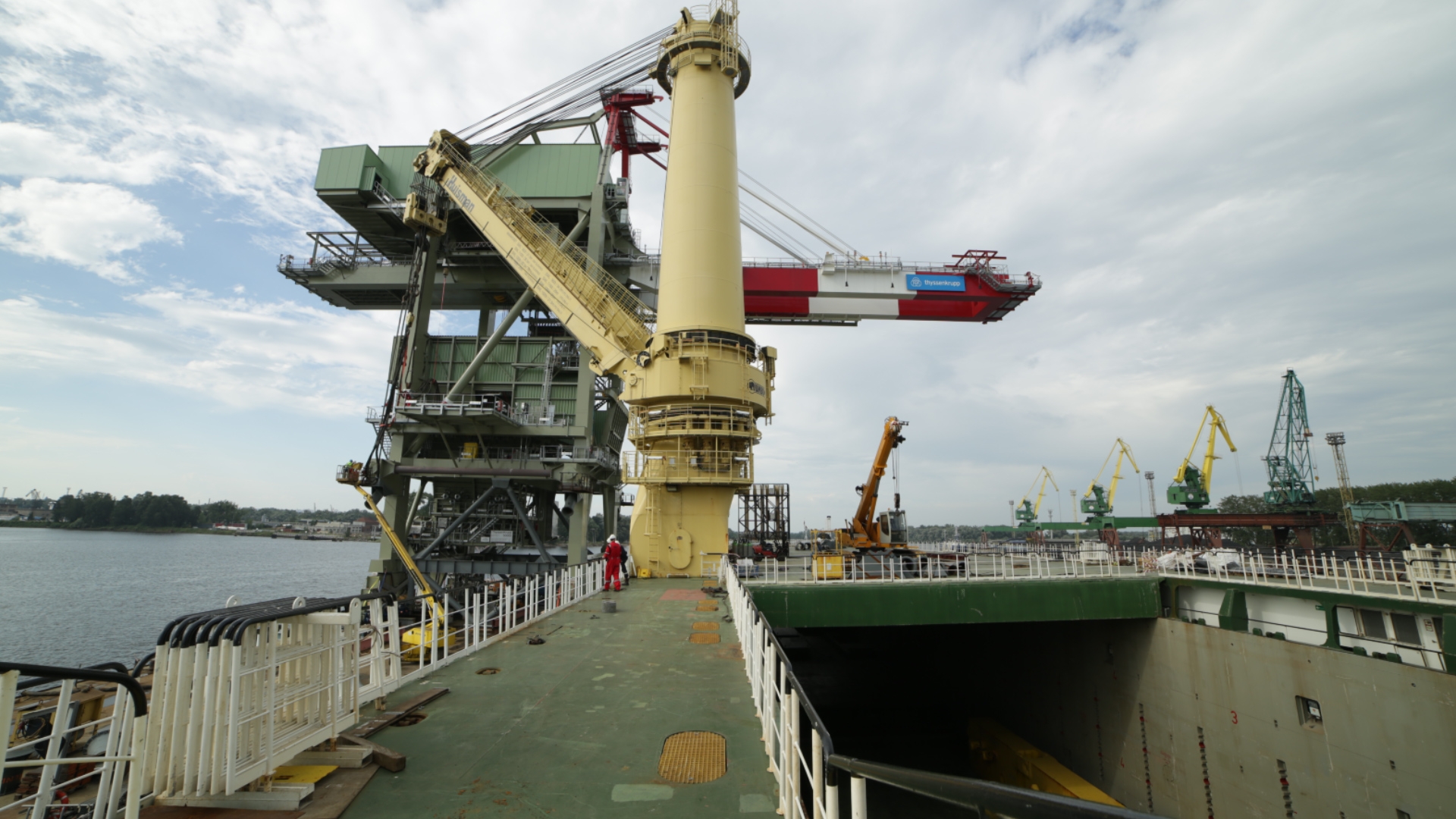 Operacja prawie zakończona. W Szczecinie, mimo początkowych trudności, z sukcesem udało się załadować gigantyczną suwnicę na statek Fairmaster – jeden z najsilniejszych na świecie. Obecnie przy Nabrzeżu Chorzowskim spółki przeładunkowo-składowej Bulk Cargo-Port Szczecin trwa mocowanie konstrukcji do ciężarowca, który na początku tego tygodnia popłynie do Irlandii. Olbrzymia suwnica to największy tego rodzaju ładunek w historii szczecińskiego portu.
