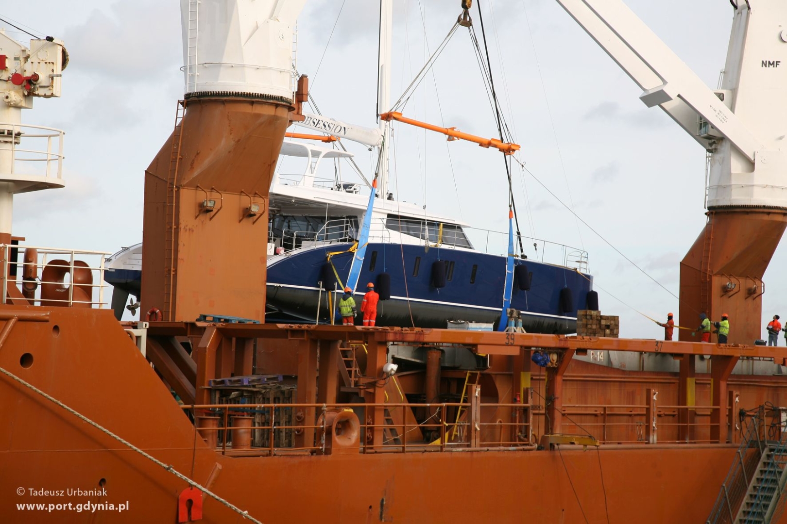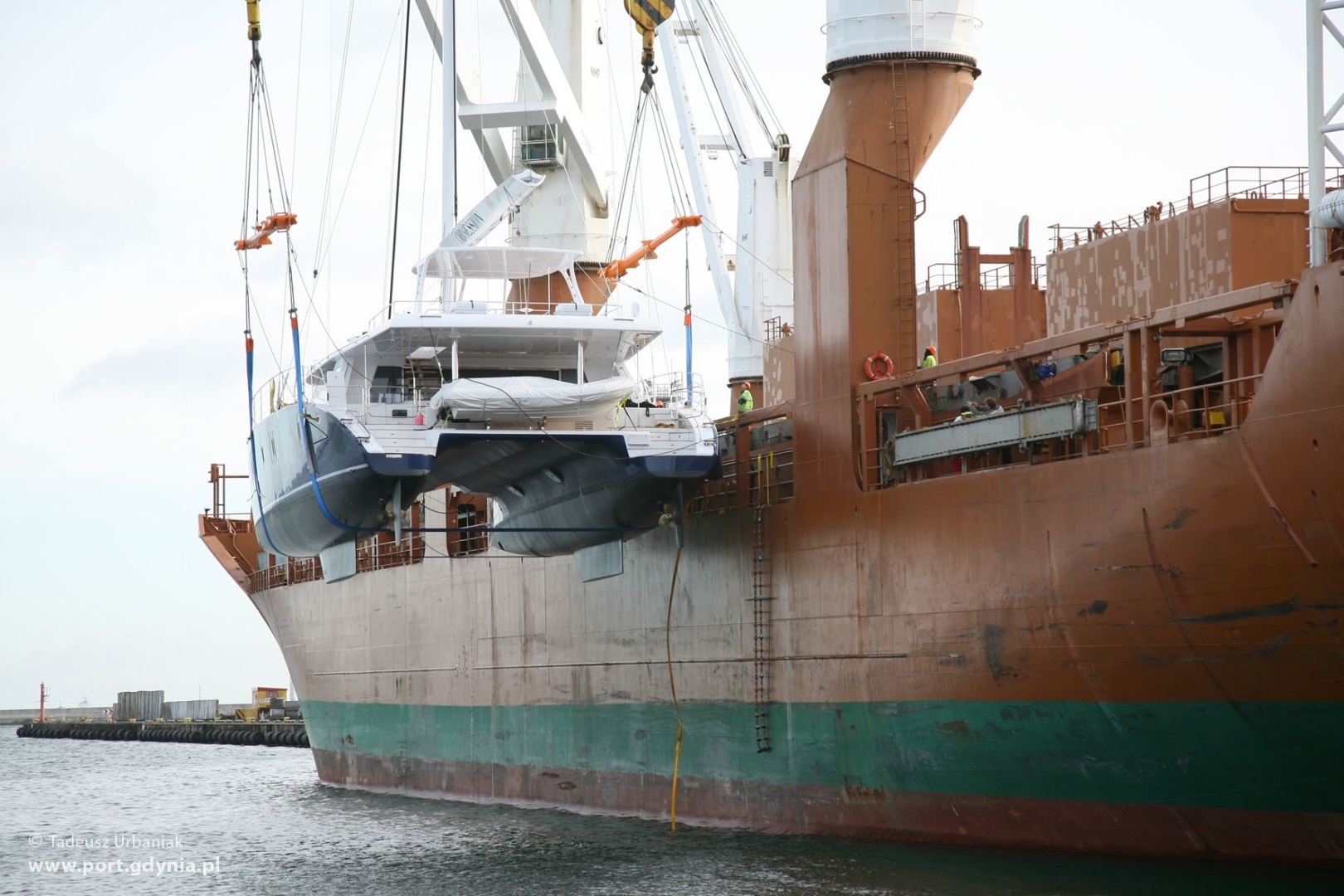 W ostatni weekend do portu w Gdyni zawinął drobnicowiec Statengracht. Na miejscu doszło do załadunku na niego najnowszego luksusowego jachtu z polskiej stoczni Sunreef Yachts o imieniu Obsession.