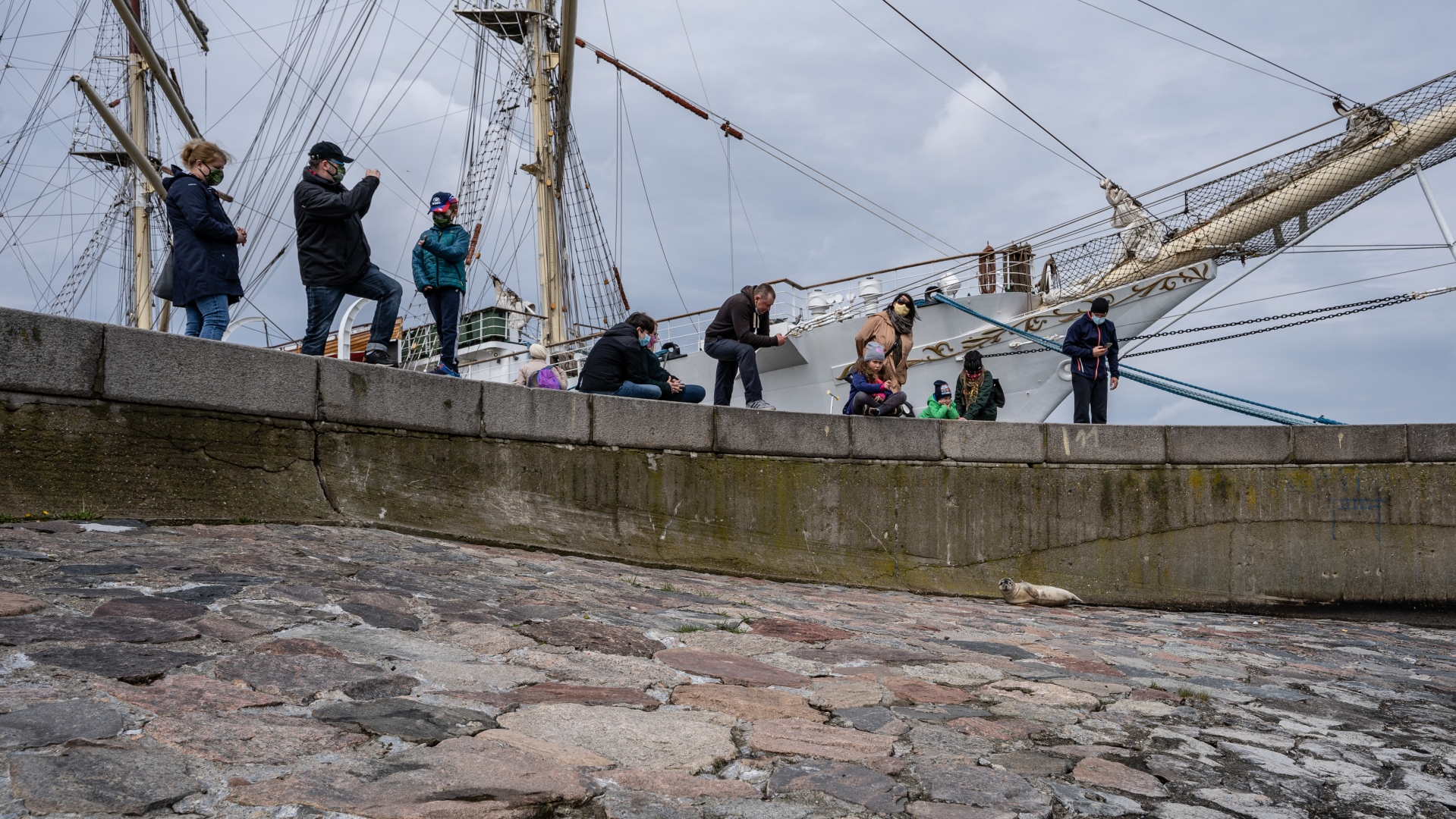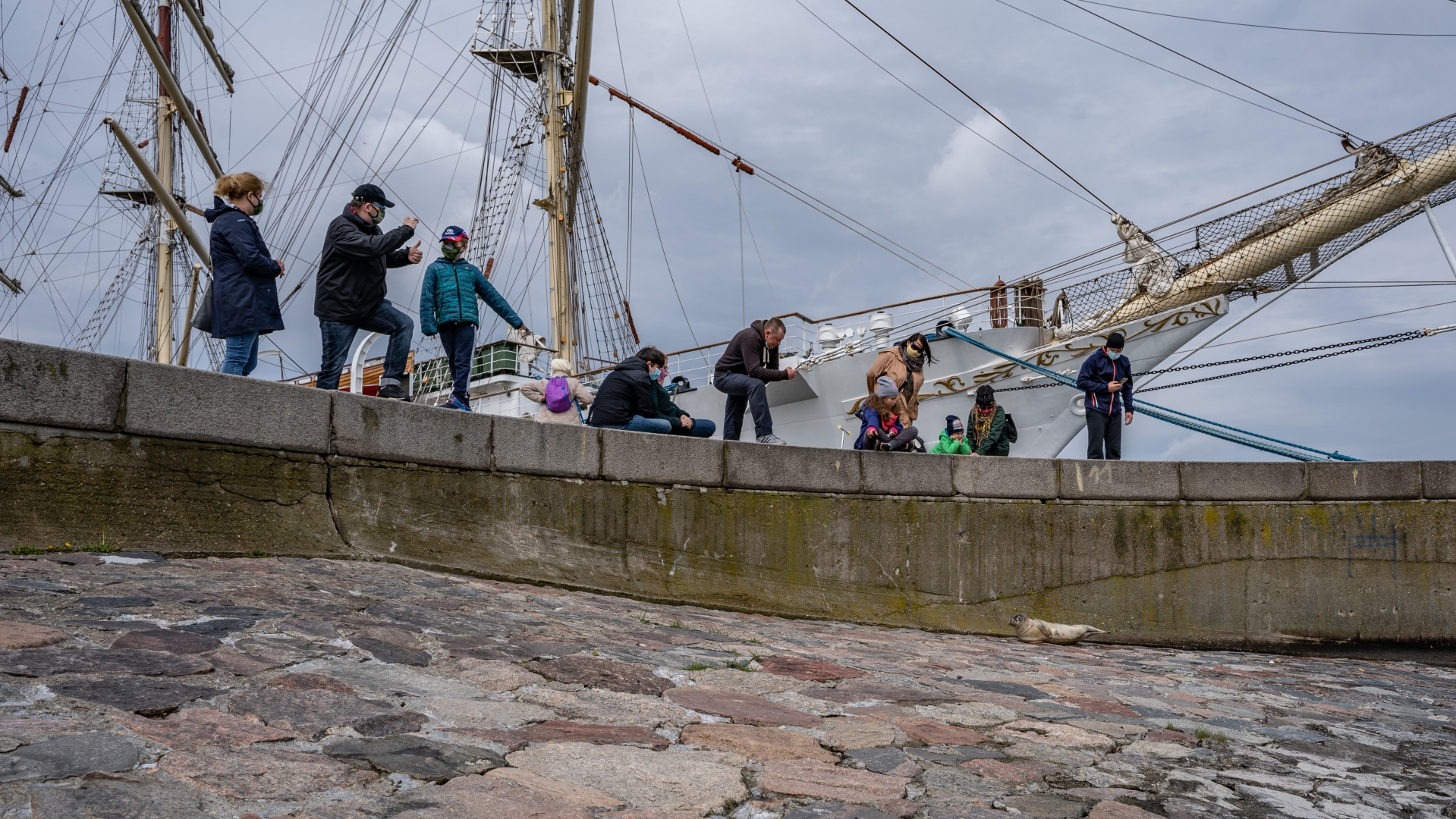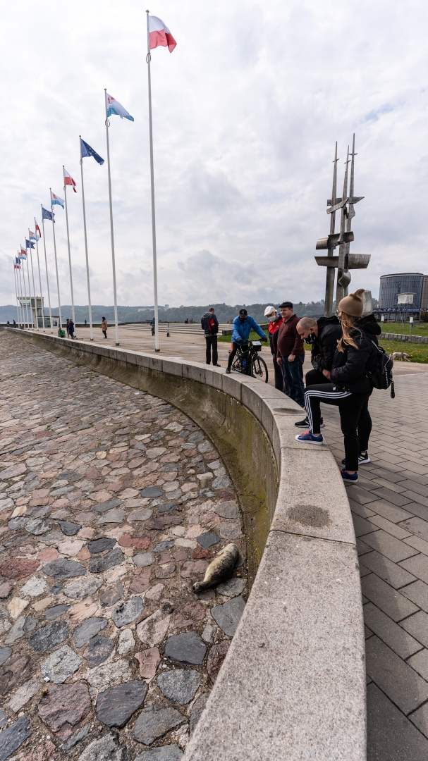 1 maja ok. południa na Skwerze Kościuszki w Gdyni spacerowiczów spotkała nietypowa atrakcja. Przy cumującym Darze Młodzieży na kamieniach wygrzewała się foka. Widocznie postanowiła się przyłączyć to akcji podziękowania marynarzom oraz walczącym z epidemią koronawirusa.