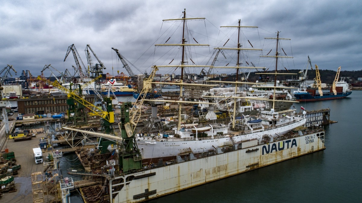 Dar Młodzieży po intensywnym Rejsie Niepodległości dookoła świata trwającym 313 dni zawinął do stoczni Nauta gdzie przez dwa tygodnie będzie przygotowywany do kolejnego sezonu."Dar Młodzieży zawinął do stoczni (Nauta - red.) w dniu wczorajszym (23.01.2020 - red.). Planowany jest remont na 14 dni z opcją do 16 dni. W tej chwili jesteśmy na etapie przygotowania jednostki do prac konserwatorsko-malarskich, czyli odbywa sie mycie jednostki. Jutro rozpoczynamy przygotowanie do powłok malarskich, czyli szlifowania i usunięcia elementów, których nie da sie usunąć w procesie mycia. Następnie jednostka będzie malowana - mówi Andrzej Bancerek, budowniczy jednostki. "Dar Młodzieży jest regularnym klientem stoczni Nauta. W przeciągu 5 lat był już w stoczni trzykrotnie" - dodaje