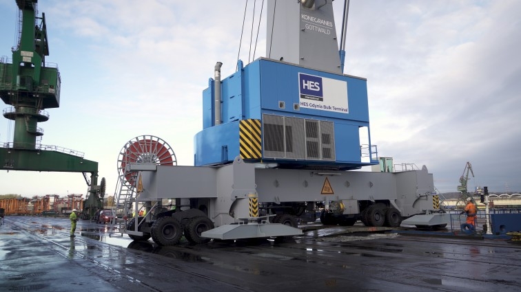 ES Gdynia Bulk Terminal (dawny MTMG) kontynuuje inwestycje w celu udoskonalenia potencjału przeładunkowego. Dnia 13 listopada br, na pokładzie specjalistycznego statku typu heavy load carrier ‘Aura’, do gdyńskiego terminalu przybył nowy, wielozadaniowy dźwig.