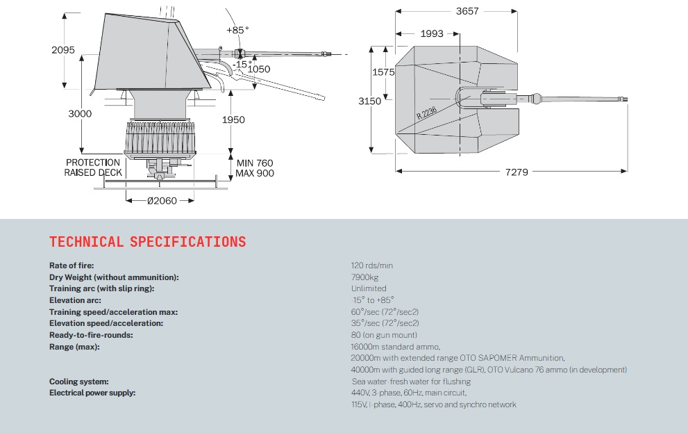 Kluczowym elementem armat morskich Leonardo jest konsola sterowania (DCC), wykorzystującą technologię cyfrową w celu zwiększenia funkcji dostępnych dla operatora i konserwatorów i zarządzająca wszystkimi innymi częściami systemu uzbrojenia. Armata jest zdolna do oddania 120 strzałów w ciągu minuty, co umożliwia także urządzenie wielofunkcyjne do automatycznej obsługi, selekcji i automatycznego podawania każdego rodzaju załadowanej amunicji. W zależności od konfiguracji i umieszczonych pocisków, system może dobierać odpowiedni pocisk umieszczony w jednym z dwóch obrotowych magazynów, pozwalając operatorom obsługującym podajniki amunicji także na jej szybką i sprawną zmianę nawet w trakcie prowadzenia wymian ogniowych. Wyposażenie armaty wspomaga także okrętowi skuteczną powierzchnię odbicia fal radarowych (radar cross section, RCS), ograniczając szansę na jego wykrycie nawet w obliczu użycia uzbrojenia. Posiada także radar prędkości wylotowej do aktualizacji systemu kontroli ognia (Fire Control System, FCS) o ewentualne odchylenia i zmiany celu, czy też system OTO Strales, służący do naprowadzania pocisku kierowanego OTO Dart.