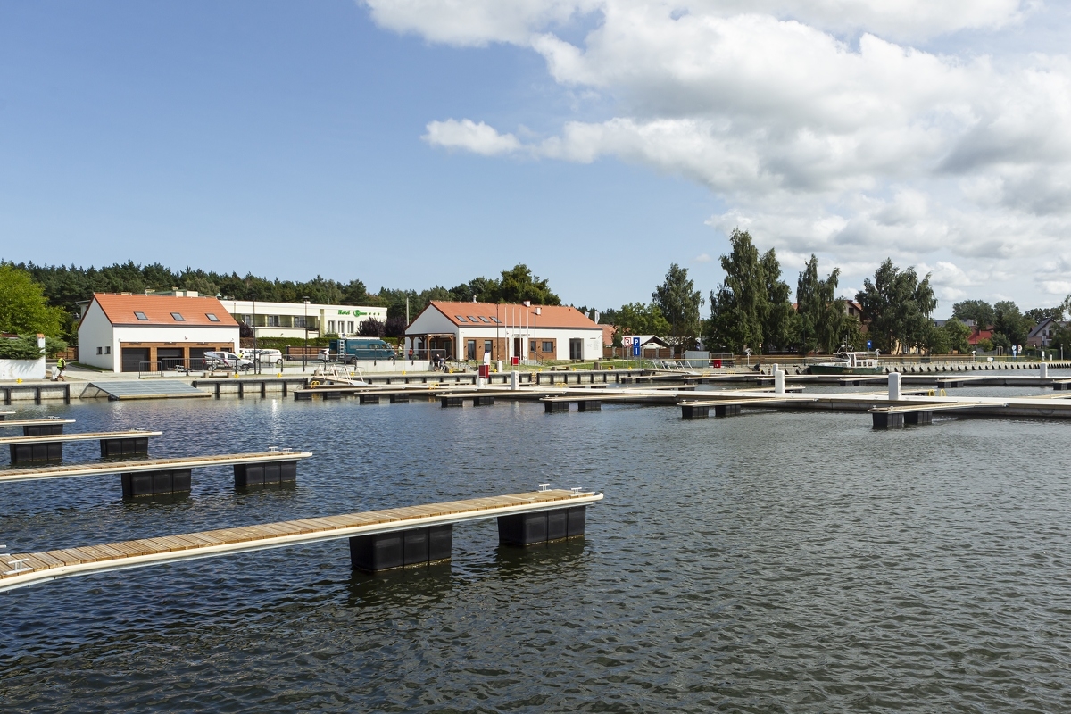 Budowa przystani rozpoczęła się w listopadzie 2020 roku i kosztowała 6,5 miliona złotych. Obiekt powstała z prefabrykowanych pomostów pływających z trapami zejściowymi. W przystani będą mogły cumować 73 jednostki.