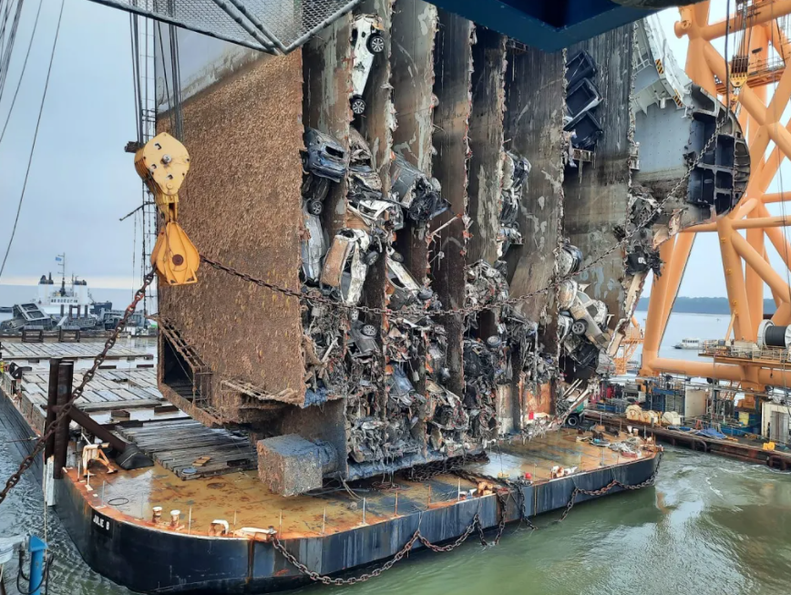 Gigantyczna sekcja wraku samochodowca Golden Ray została pocięta i załadowana na barkę. To bardzo ważny moment w procesie usuwania jednostki, która wpłynęła na mieliznę w pobliżu amerykańskiego Port Brunswick.