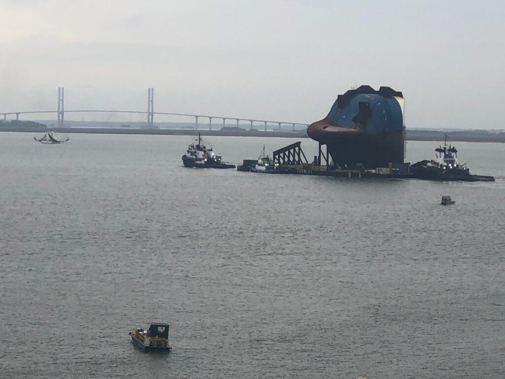 St. Simons Sound Incident Response Unified Command udostępniła kilka zdjęć z przebiegu operacji, ukazując ogromny rozmiar wraku, jak i poziom trudności w usuwaniu gigantycznych sekcji i manewrowania nimi.