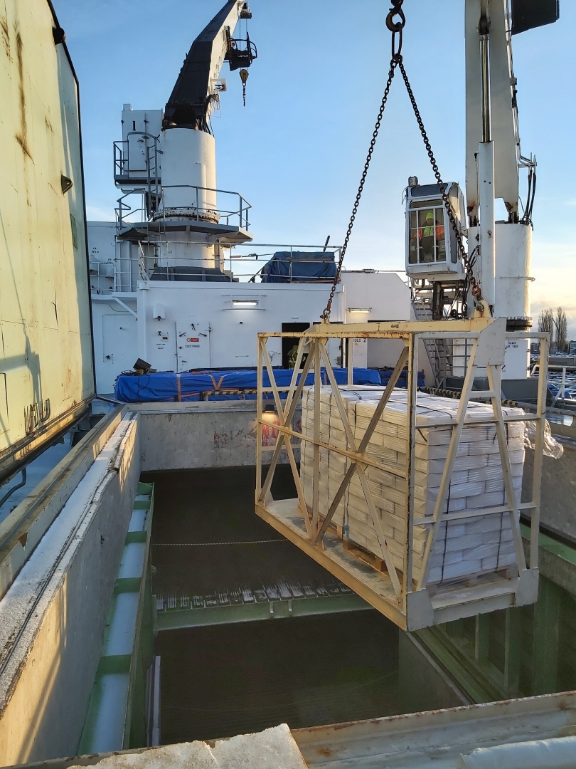 Chłodniowiec przypłynął z Puerto Bolivar, Ekwador, do Gdańska w dniu 20 stycznia z pełno-okrętowym ładunkiem bananów, transportowanych dla polskiego importera cytrusów spółki Citronex. Po wyładunku statek na weekend wyszedł na redę, aby ustąpić miejsca przy nabrzeżu Wolnego Obszaru Celnego w Gdańsku innej jednostce. Po weekendzie jednostka powróciła na terminal WOC i od poniedziałku 25 stycznia rozpoczęto załadunek 2,500 ton kurczaków z przeznaczeniem na Kubę.