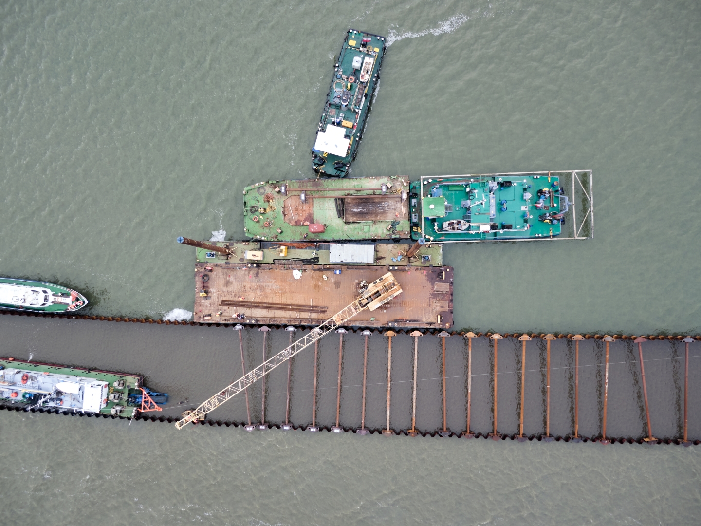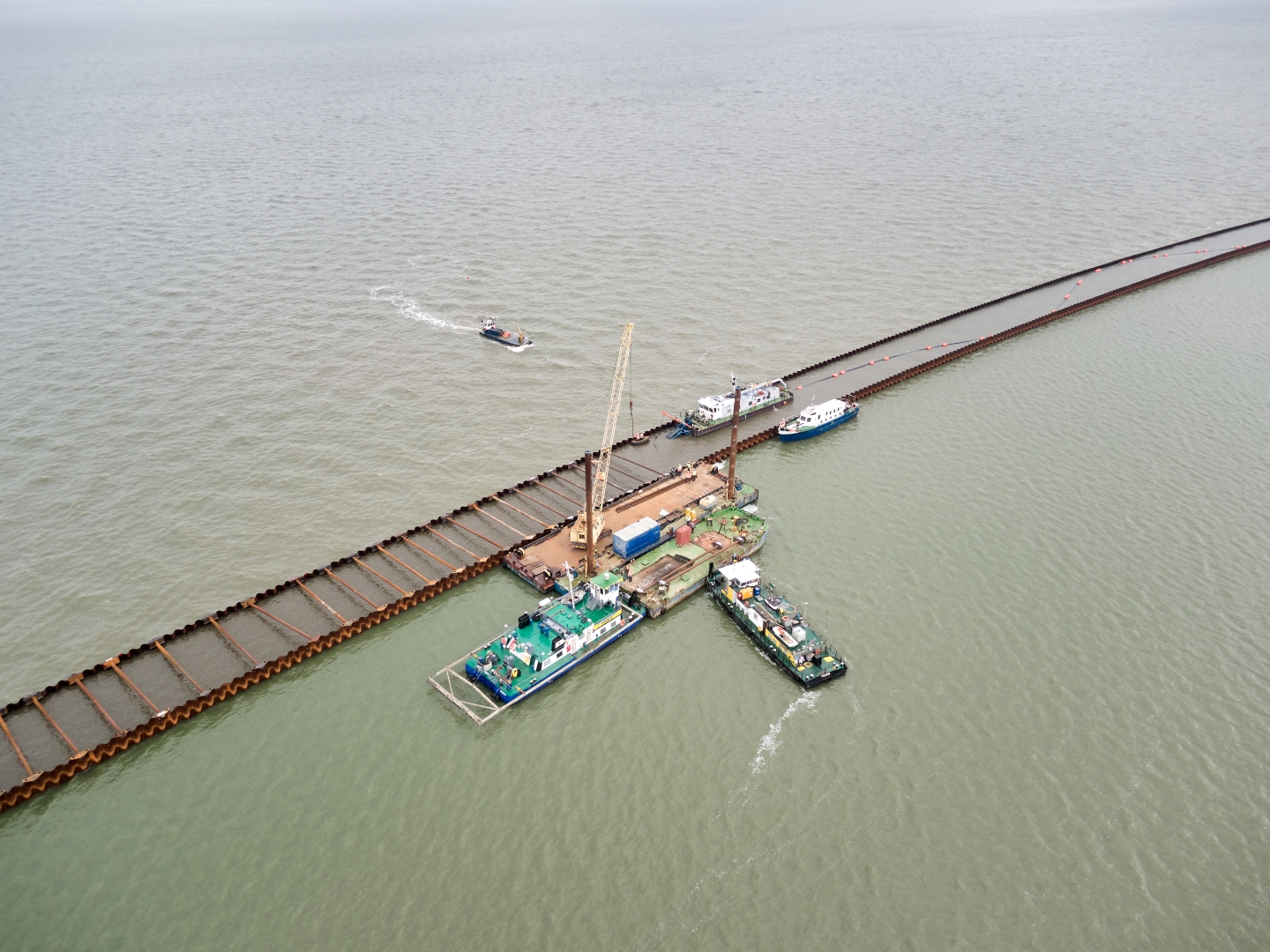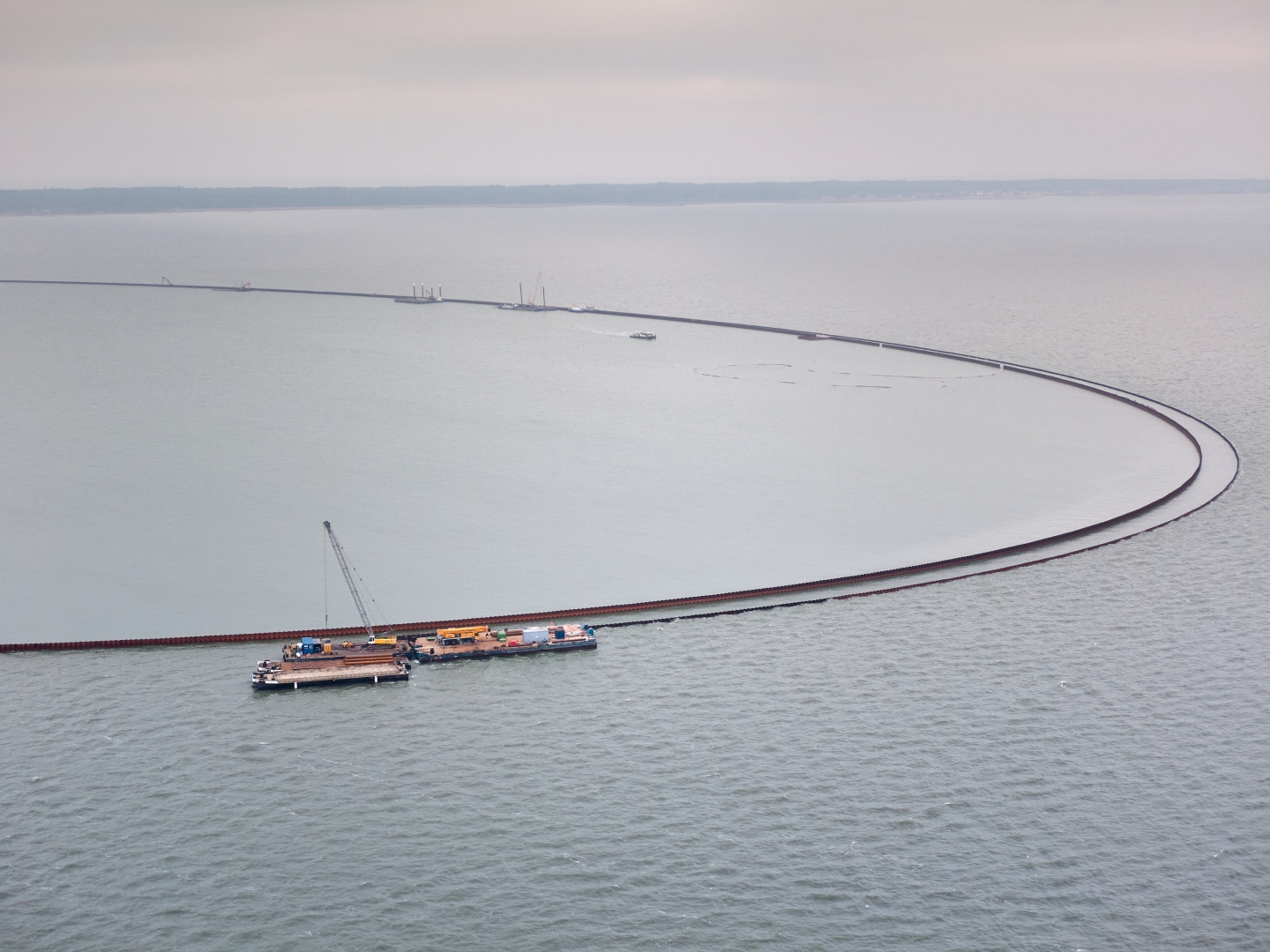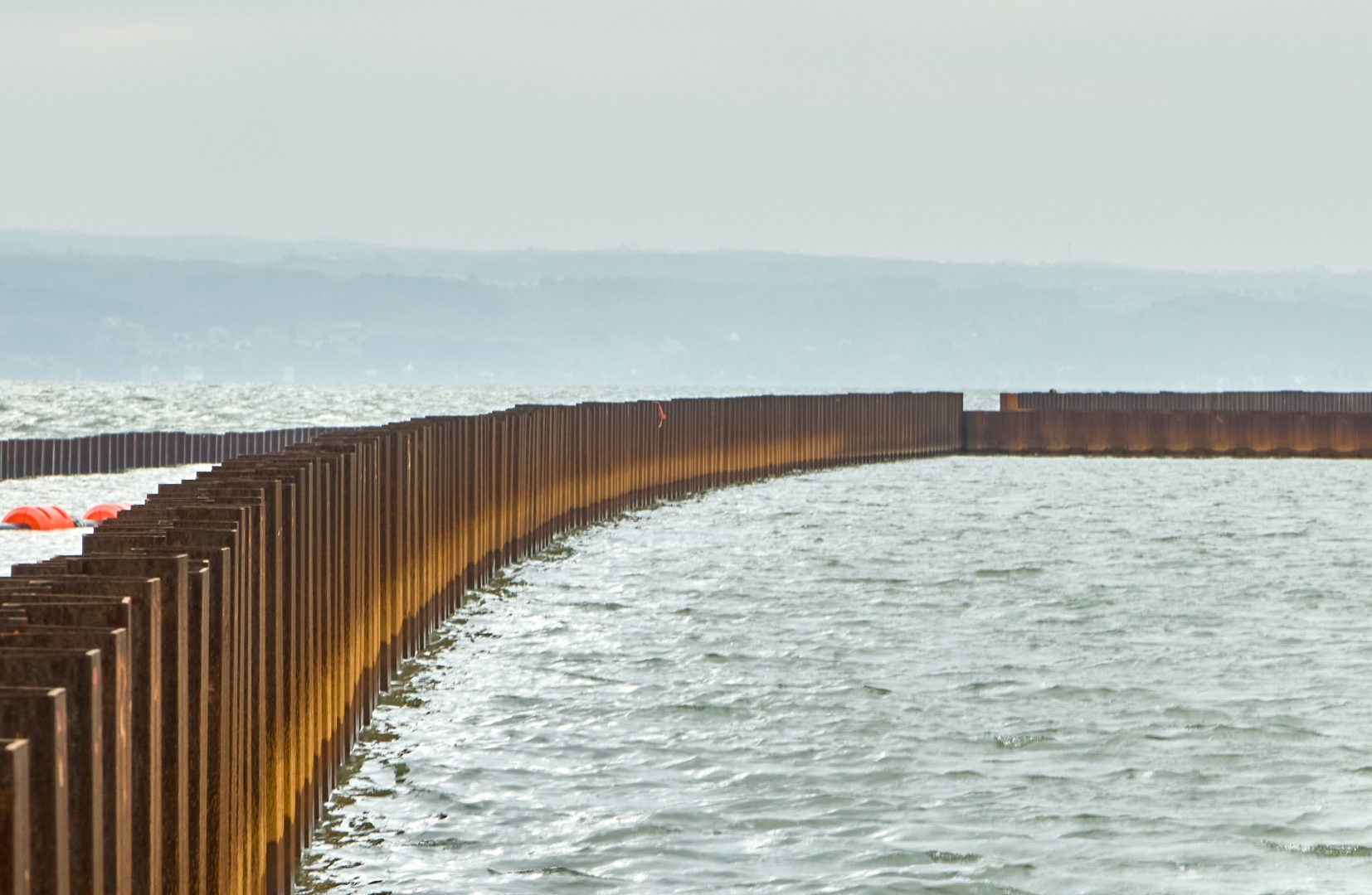 Na Zalewie Wiślanym wykonywana jest sztuczna wyspa. Trwa pogrążanie ścianek szczelnych, tworzących jej obwiednię. Wykonanych zostało już ponad 40 % prac. Montowane są ściągi i stopniowo zasypywana jest grodza.