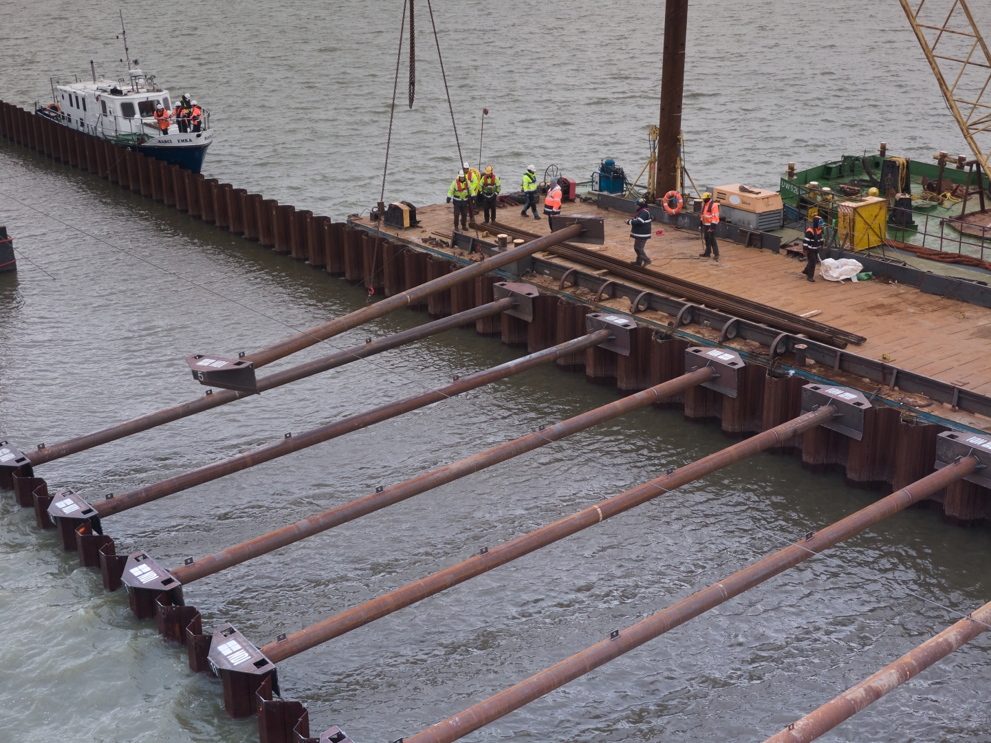 Na moście północnym wykonywane będą prace żelbetowe, budowa nasypów i platforma do montażu konstrukcji stalowej. Na sztucznej wyspie pogrążana będzie ścianka grodzy tworzącej obwiednie, montowane ściągi i zasypy. Grodza zostanie zabezpieczona przed zimą.
