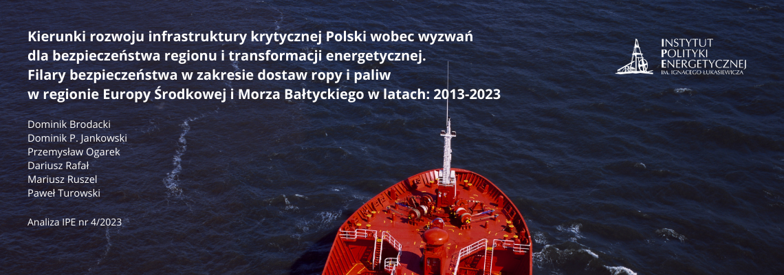 Instytut Polityki Energetycznej im. Ignacego Łukasiewicza opublikował analizę pt. „Kierunki rozwoju infrastruktury krytycznej Polski wobec wyzwań dla bezpieczeństwa regionu i transformacji energetycznej. Filary bezpieczeństwa w zakresie dostaw ropy i paliw w regionie Europy Środkowej i Morza Bałtyckiego w latach: 2013-2023”. Autorami są Dominik Brodacki, Dominik Jankowski, Przemysław Ogarek, Dariusz Rafał, Mariusz Ruszel i Paweł Turowski. Autorzy omawiają inwestycje w infrastrukturę krytyczną dokonane w ostatnich latach, jak i pokazują kierunki działań na najbliższy czas.