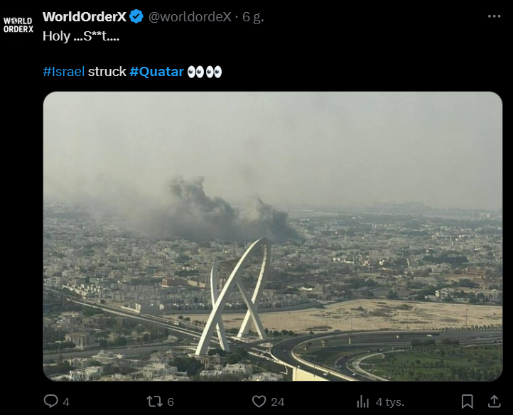 Izrael zaatakował we wtorek przywódców palestyńskiego Hamasu w stolicy Kataru, Dausze. Media podają sprzeczne informacje dotyczące efektu uderzenia i losów liderów grupy. Premier Benjamin Netanjahu podkreślił, że była to wyłącznie izraelska operacja. Katar i państwa arabskie skrytykowały atak.