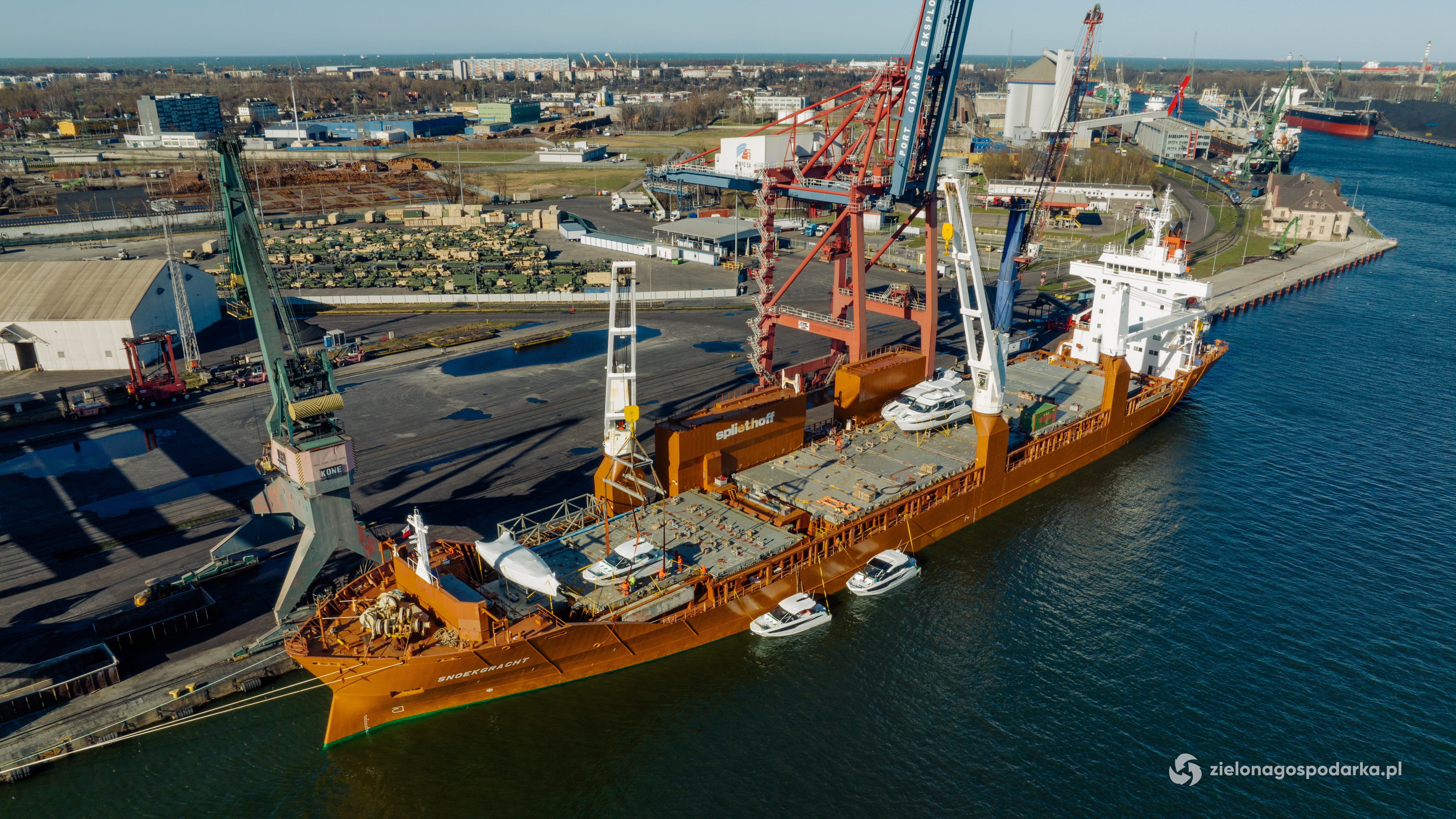 Polska firma Galeon, znana z produkcji luksusowych jachtów i łodzi motorowych, zorganizowała wysyłkę siedmiu swoich jednostek z Portu Gdańsk do Stanów Zjednoczonych. Łodzie załadowano na pokład statku Spliethoff Snoekgracht, który posiada trzy dźwigi 120-tonowe.