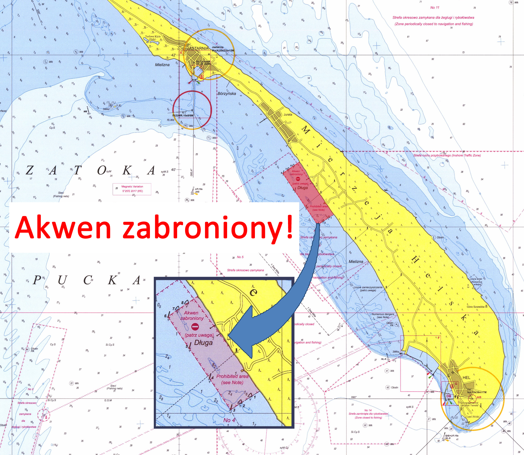 Szczególną uwagę należy zwrócić na przestrzeganie zakazu wstępu na akwen oznaczony żółtymi bojami, znajdujący się na wysokości Juraty, na południowy wschód od wejścia do portu w Jastarni.
