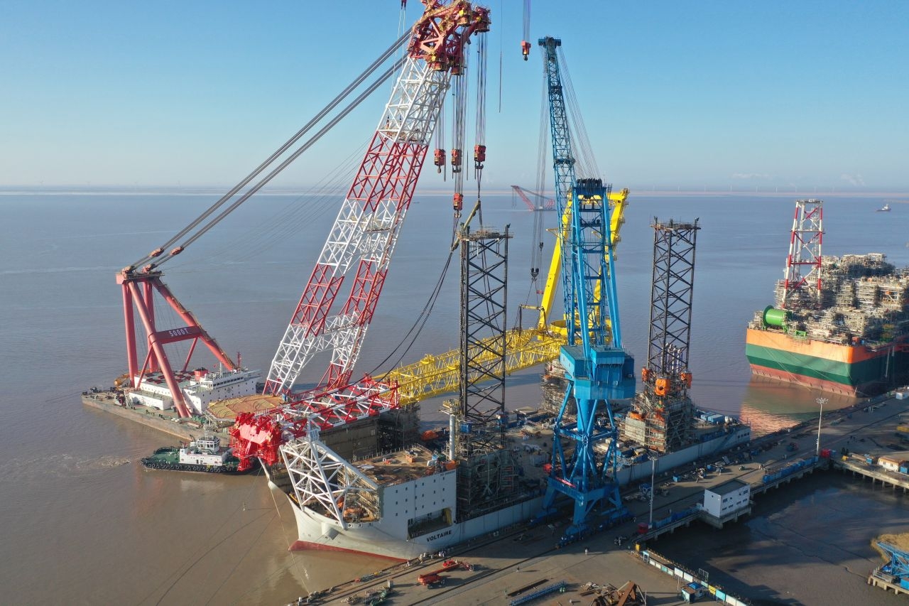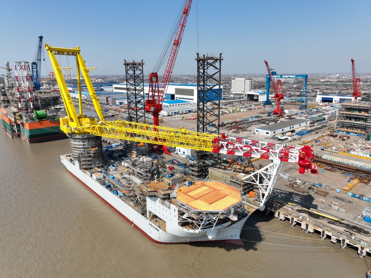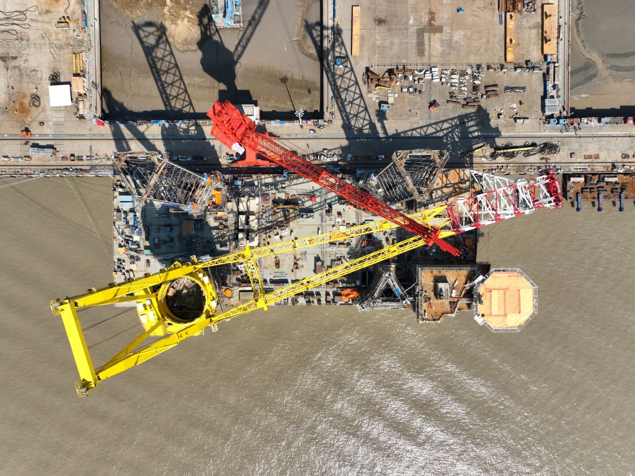 Voltaire, nowy jack-up Jan De Nul, który z końcem stycznia został zwodowany w stoczni COSCO Shipping w chińskim Nantong, został już wyposażony w największy w historii żuraw typu LEC (Leg Encircling Crane).