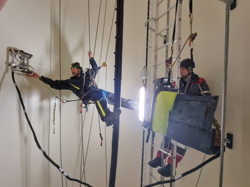 – Jako alpiniści przemysłowi najchętniej korzystamy z dostępu linowego, bo dzięki niemu z reguły nie trzeba budować rusztowań czy innych konstrukcji, co przyspiesza cały proces – wyjaśnia Rudacki. – Na realizacjach, gdzie jesteśmy generalnym wykonawcą, zawsze znajduje się cały niezbędny personel inżynieryjny, pełna obsada. Taki zespół jest potrzebny, żeby zweryfikować, że dana praca została wykonana w stu procentach jakościowo. Po upłynięciu odpowiedniego czasu powtarzamy badania NDT i sprawdzamy, czy wszystko zostało skutecznie naprawione – dodaje.