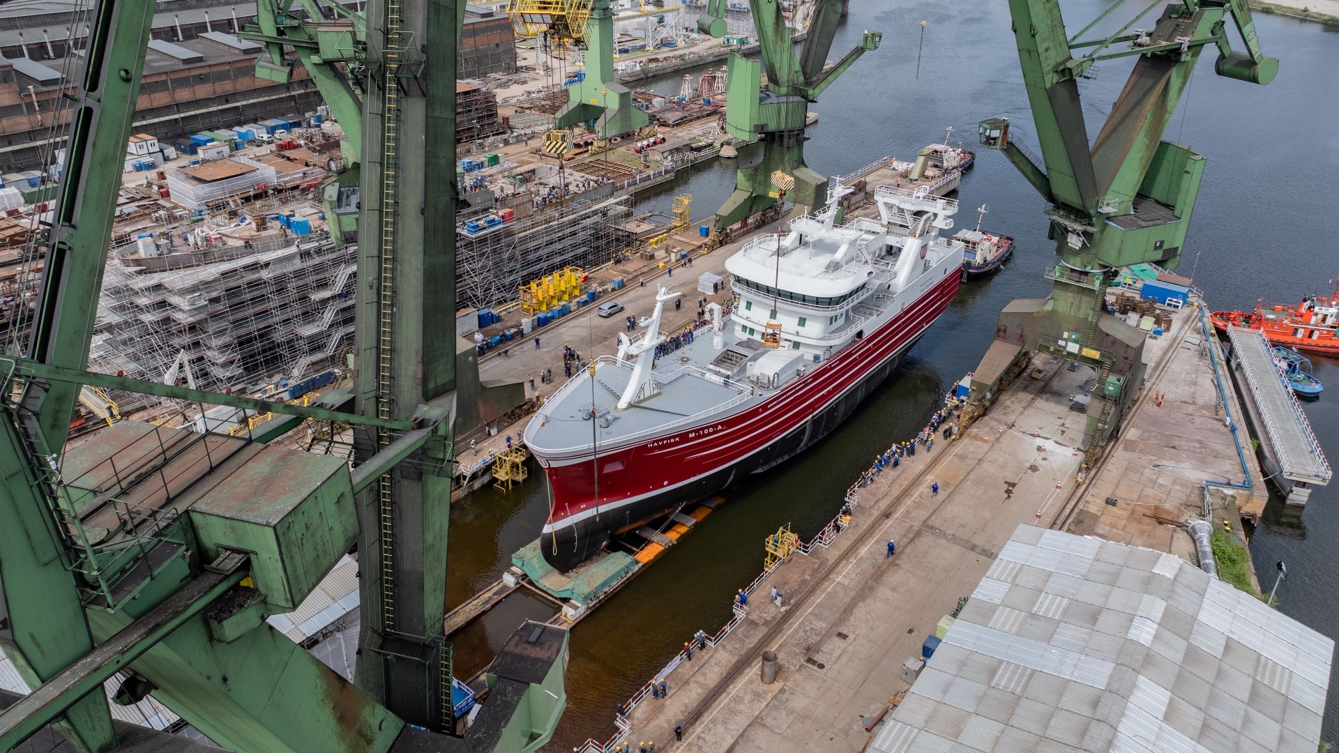 W tym roku to drugie, przeprowadzone w ten sposób, wodowanie w gdańskiej stoczni i zarazem trzecie od czasu wielkiej przeprowadzki Karstensena z Gdyni. Dzięki zmianie lokalizacji i przejęciu infrastruktury w postaci m.in. pochylni B1 oraz słynnych, zielonych dźwigów Kone, zakład mógł uwydajnić budowę kolejnych statków. Przypomnijmy, że poprzednie wodowanie, choć tym razem nie bez problemów, odbyło się w marcu tego roku. Został wtedy zwodowany statek rybacki NB 476 Høgaberg dla armatora z Wysp Owczych.