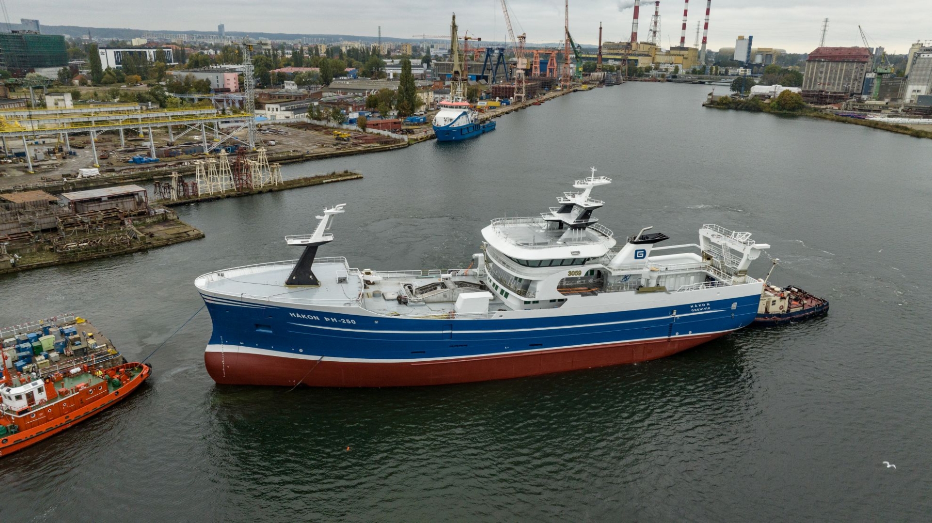 Przed nim stał na pochylni wzdłużnej 75-metrowy Hákon, trawler budowany