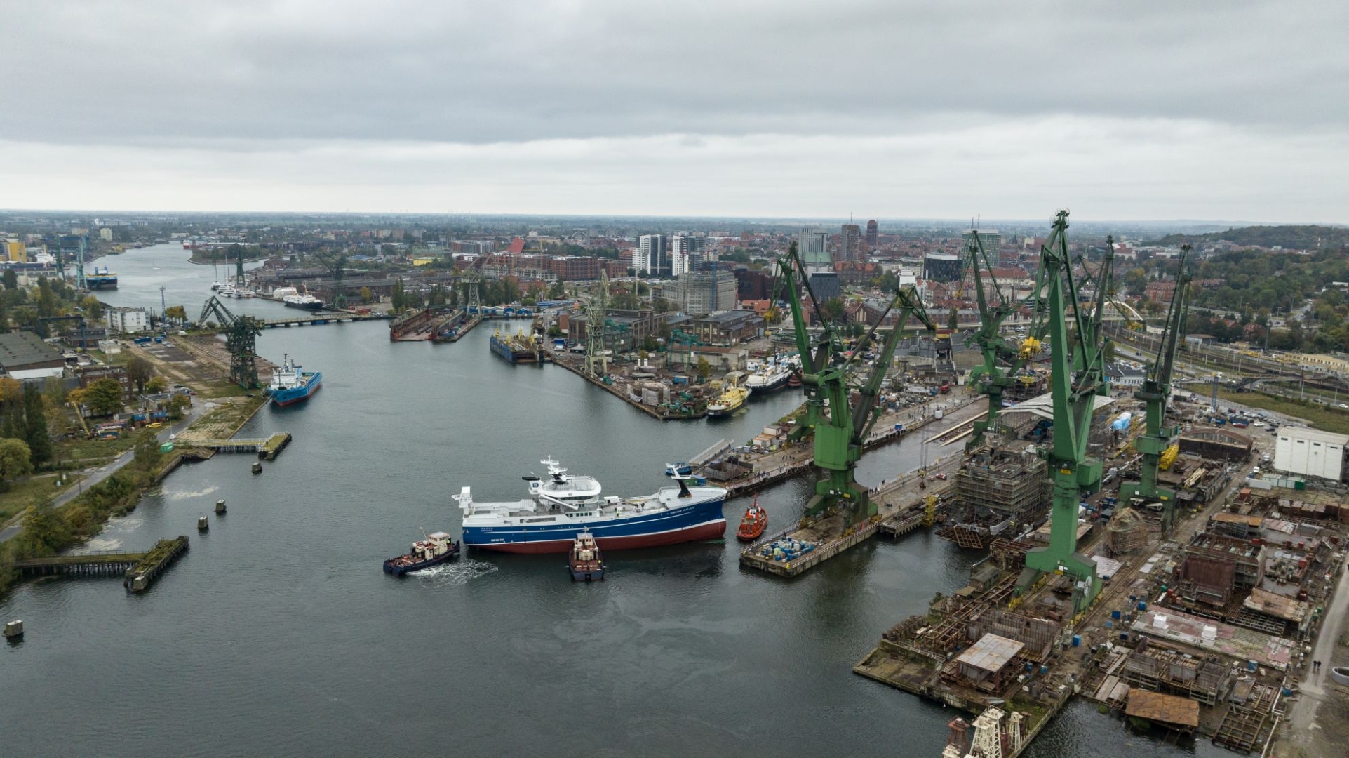 Chwilę po godzinie 14:00 w piątek 20 października zgromadzona licznie publiczność na kultowych terenach stoczniowych z zielonymi dźwigami w Gdańsku stała się świadkiem ważnego wydarzenia – z pochylni znów, po latach zwodowano statek. Tym razem zrobiła to stocznia Karstensen Shipyard Poland, która od kilku miesięcy jest właścicielem terenu i buduje tam statki rybackie.