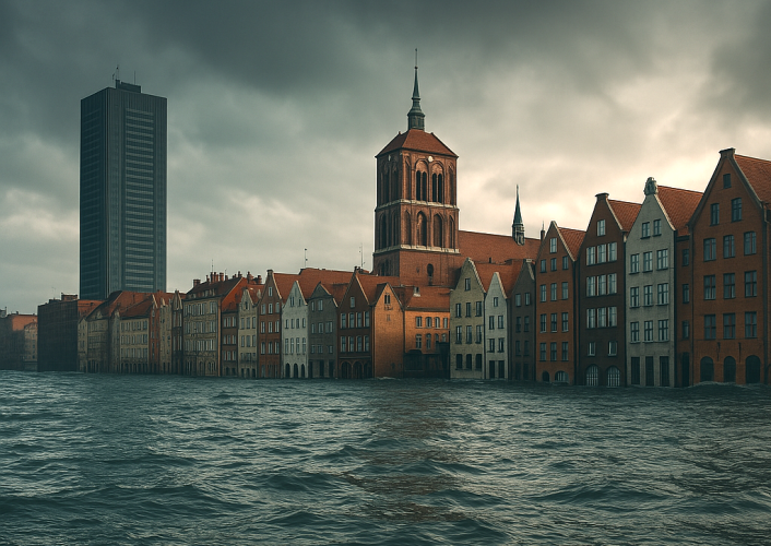 - Nowy Dwór Gdański i okolice – region Żuław, silnie zagrożony zalaniem.