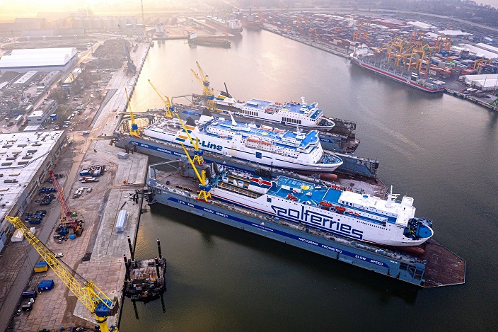 Na wspomnianym doku FD170 pierwszy znalazł się prom DFDS - „Optima Seaways”. Niedługo po nim na tym samym doku znalazła się jednostka „Baltivia”, należąca do polskiego armatora promowego: Polskiej Żeglugi Bałtyckiej (Polferries). W międzyczasie w stoczni znajdowały się również dwie jednostki niemieckiego armatora TT-Line: „Marco Polo” i „Robin Hood”.