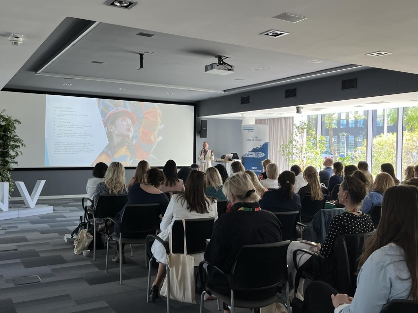 Następnie o swoich doświadczeniach związanych z różnorodnością i wychodzeniem poza swoje granice komfortu, a także szufladkowaniem zawodowym wypowiedziała się Marta Forreiter-Weiner, Członkini Zarządu Stowarzyszenia Kobiet Branży Morskiej INSPIRA, która z branżą morską i offshore związana jest już od 10 lat. Zwróciła ona uwagę na stereotypy dotyczące kobiet pracujących w branży morskiej. Podkreśliła trudności związane z dostępem do odpowiedniej odzieży ochronnej dla kobiet, co wpływa na bezpieczeństwo pracy.
