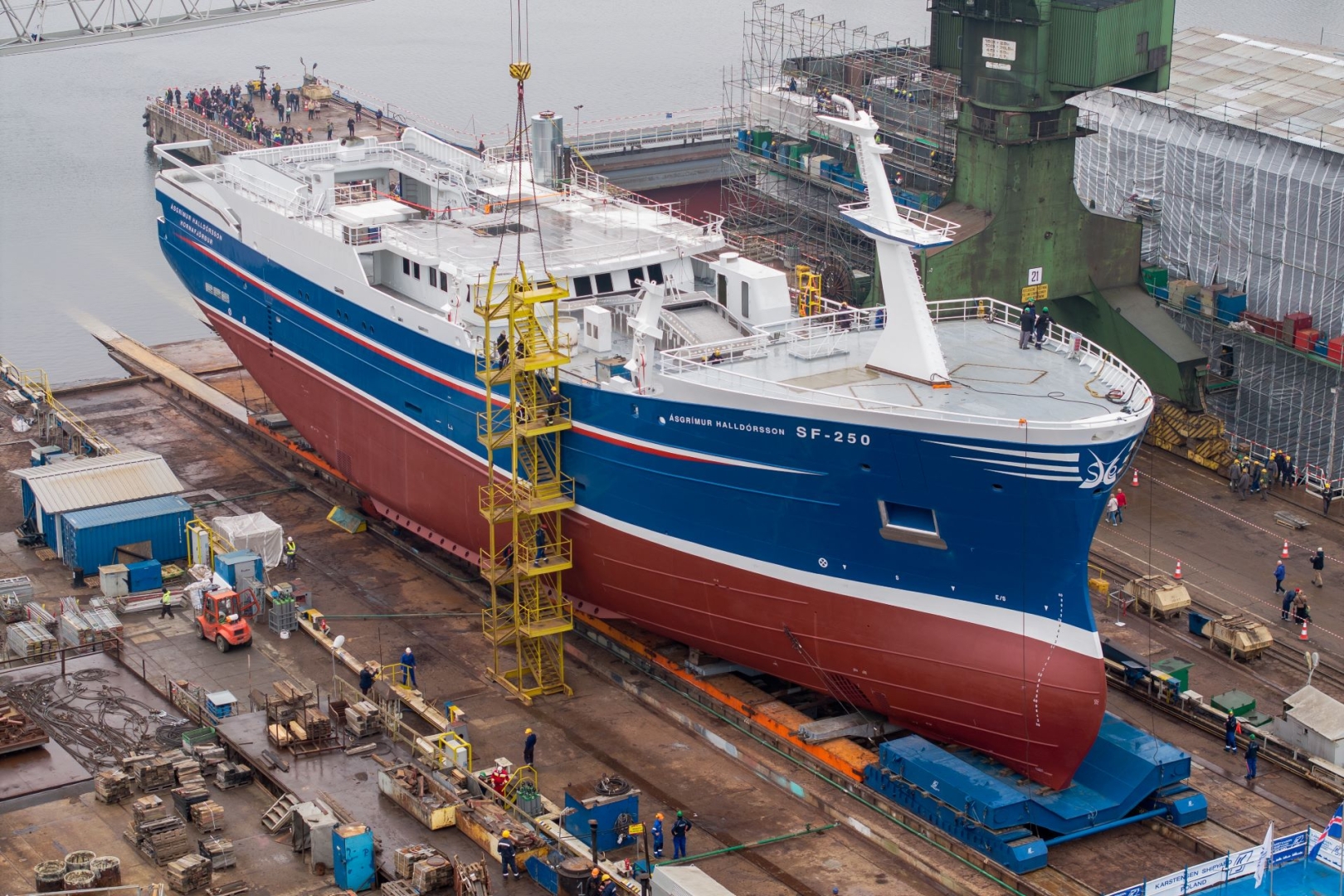 Wydarzenie odbyło się 16 kwietnia ok. 10.00 rano. Miało ono charakter otwarty, stąd obok stoczniowców i przedstawicieli głównego wykonawcy oraz zamawiającego, wzięła w nim udział niemała publiczność złożona z gdańszczan oraz turystów. Budowany od czerwca ub. r. statek, trzeci zwodowany przez Karstensen w tym roku, rankiem zjechał z pochylni B3 na wodę, a następnie został odholowany na nabrzeże, gdzie będą prowadzone dalsze prace doposażeniowe. Pozwoli to zrobić miejsce dla kolejnej jednostki, budowanej przez stocznię. Zwodowany Ásgrímur Halldórsson (SF-250) to trawler typu RSW (ang. Refrigerated Sea Water), którego odbiorcą będzie islandzki armator Skinney Thinganes HF, którego macierzysty port będzie znajdował się w islandzkiej miejscowości Hornafjordur.