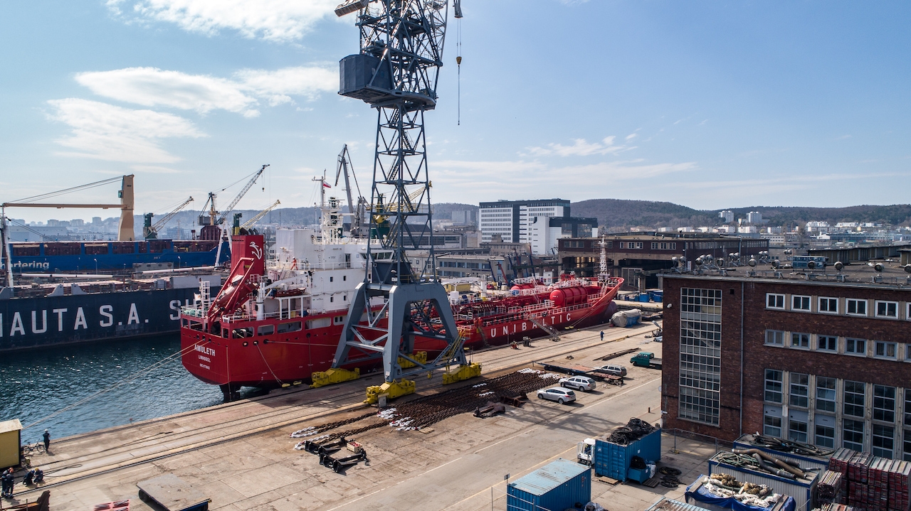 Zainteresowanie remontami i przebudowami w gdyńskiej stoczni rośnie wraz z wychodzeniem globalnej gospodarki z stagnacji wywołanej pandemią. Obecnie w dokach i przy nabrzeżach Nauty wykonywane są prace na kilkunastu jednostkach, w tym aż na 6 montowany jest system uzdatniania wód balastowych.