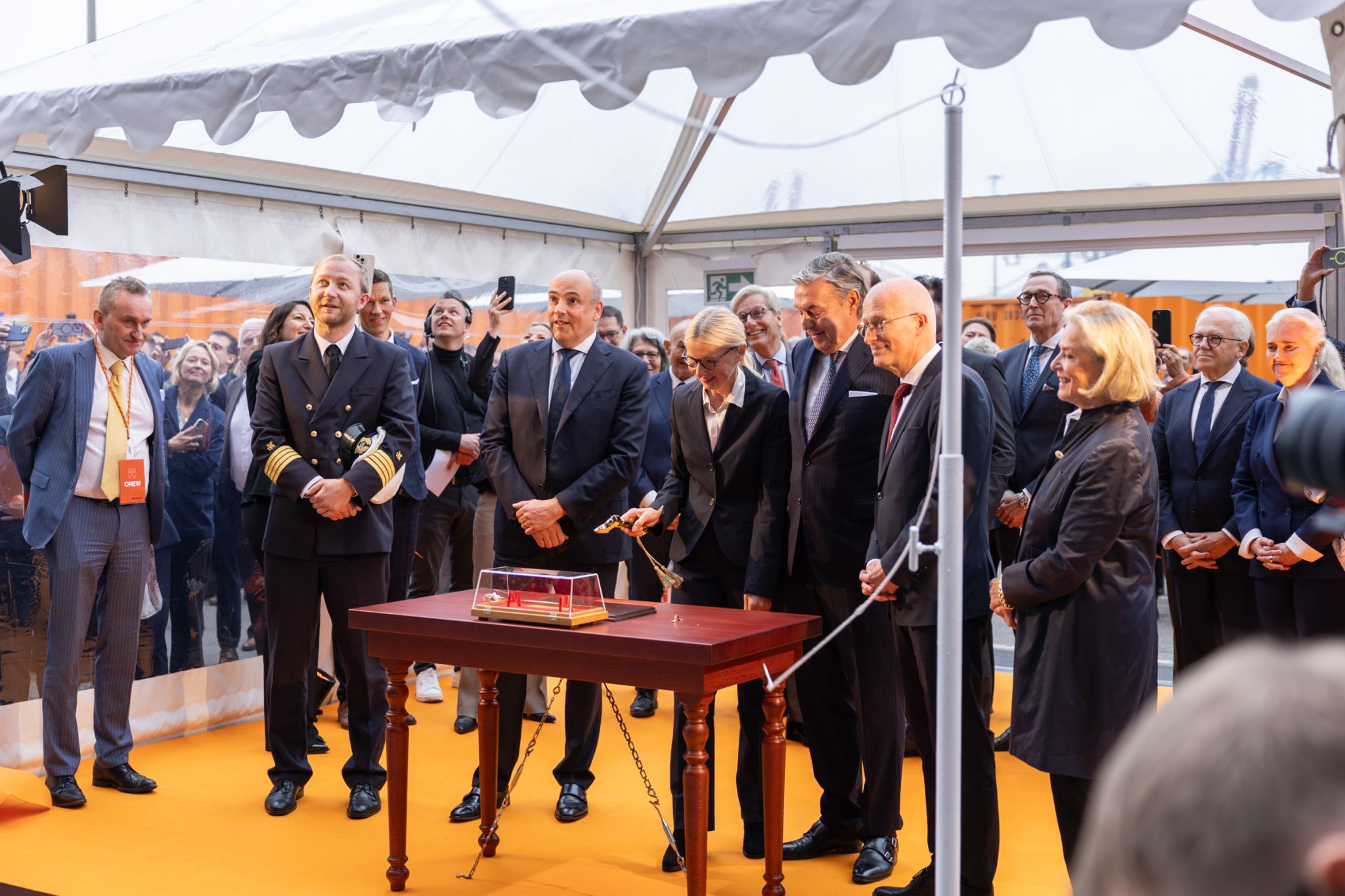 Wydarzenie miało miejsce w macierzystym porcie, od którego pochodzi nazwa statku, Hamburgu, a dokładniej w HHLA Container Terminal Burchardkai. Matką chrzestną została Eva-Maria Tschentscher, żona burmistrza Hamburga, dr Petera Tschentschera.