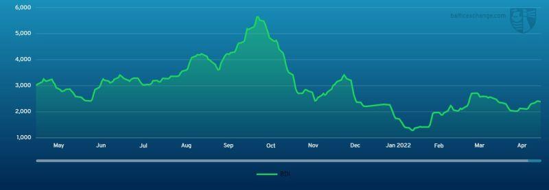Wykres Baltic Dry Index na przestrzeni ostatnich 12 miesięcy. / Źródło: The Baltic Exchangea