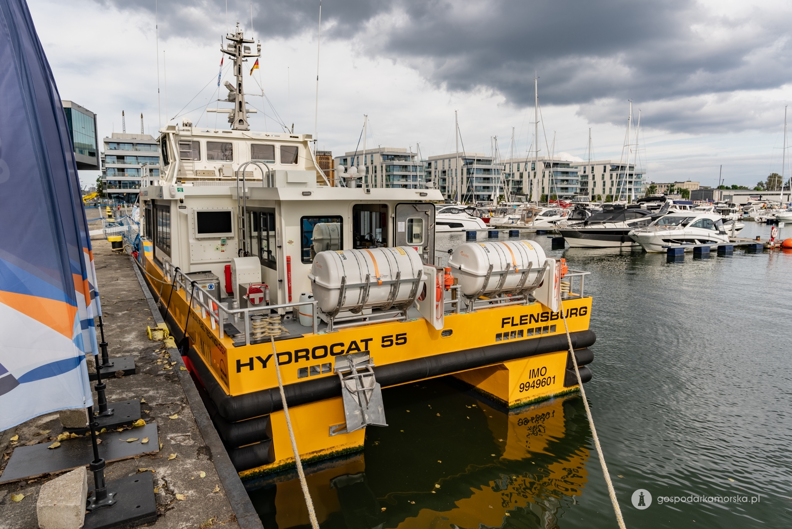 Dodatkową atrakcją była możliwość zwiedzenia jednostki pływającej służącej do transferu załóg techników turbin wiatrowych. Partner strategiczny konferencji, FRS Windcat Polska Sp. z o.o., udostępnił zwiedzającym HydroCat 55 – pierwszą na świecie jednostkę CTV zbudowaną w technologii H2-ready. Hydrocat to imponujący, zaawansowany statek, który łączy w sobie rozwiązania wodorowe z uznanym projektem Windcat MK3.5. Statek ten może działać zarówno na nowoczesnych silnikach wysokoprężnych, jak i dwóch dwupaliwowych silnikach o łącznej mocy 1498 kW. Podczas eksploatacji wykorzystuje wodór i MGO, co pozwala na znaczną redukcję tradycyjnego zużycia paliwa i związanego z nim zanieczyszczenia o ponad 50%.