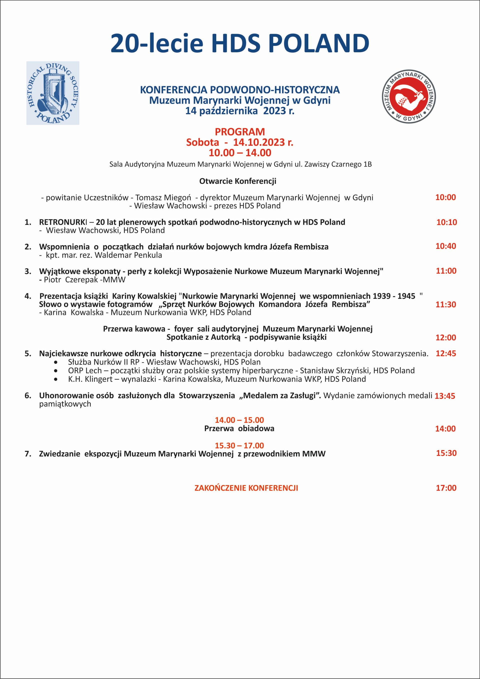 Wydarzenie wpisuje się w obchody 20-lecia Stowarzyszenia Miłośników Historii Nurkowania oraz 50-tej rocznicy powołania formacji bojowych nurków w ramach polskiej Marynarki Wojennej. Spotkanie odbędzie się 14 października tego roku o godz. 10.00 w sali audytoryjnej muzeum (ul. Zawiszy Czarnego 1B).