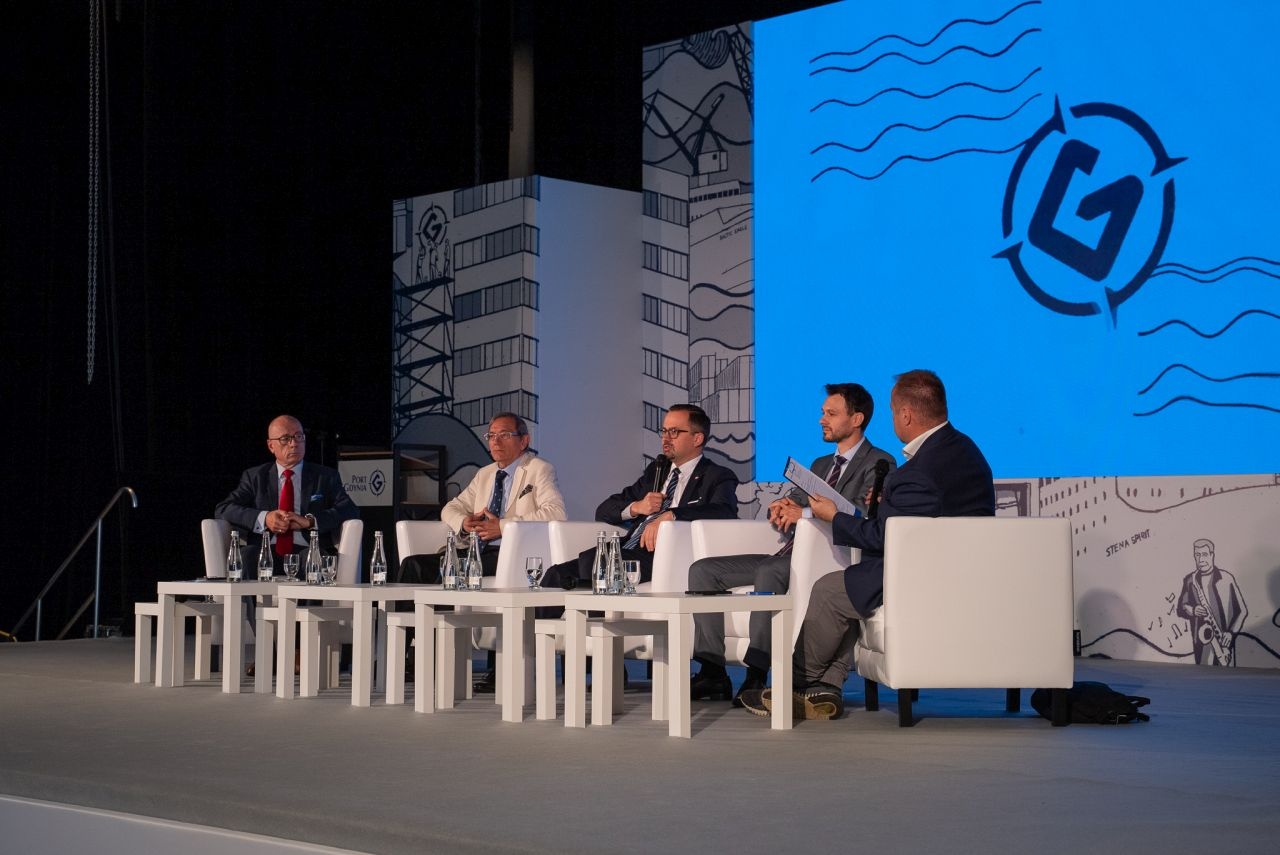 Kolejnym punktem programu był pierwszy panel dyskusyjny pt. „Łańcuch transportu intermodalnego w Polsce wobec bieżących zakłóceń i przyszłych wyzwań gospodarczych, społecznych i klimatycznych”. Dyskusję moderował Piotr Stefaniak, a wzięli w niej udział Jan Jarmakowski, dyrektor zarządzających GCT, Leszek Jurczyk, dyrektor ds. Strategii i Rozwoju Portu Gdynia, Marek Tarczyński, prezes zarządu w firmie Terramar oraz Michał Kotowicz, dyrektor sprzedaży w firmie CTL.