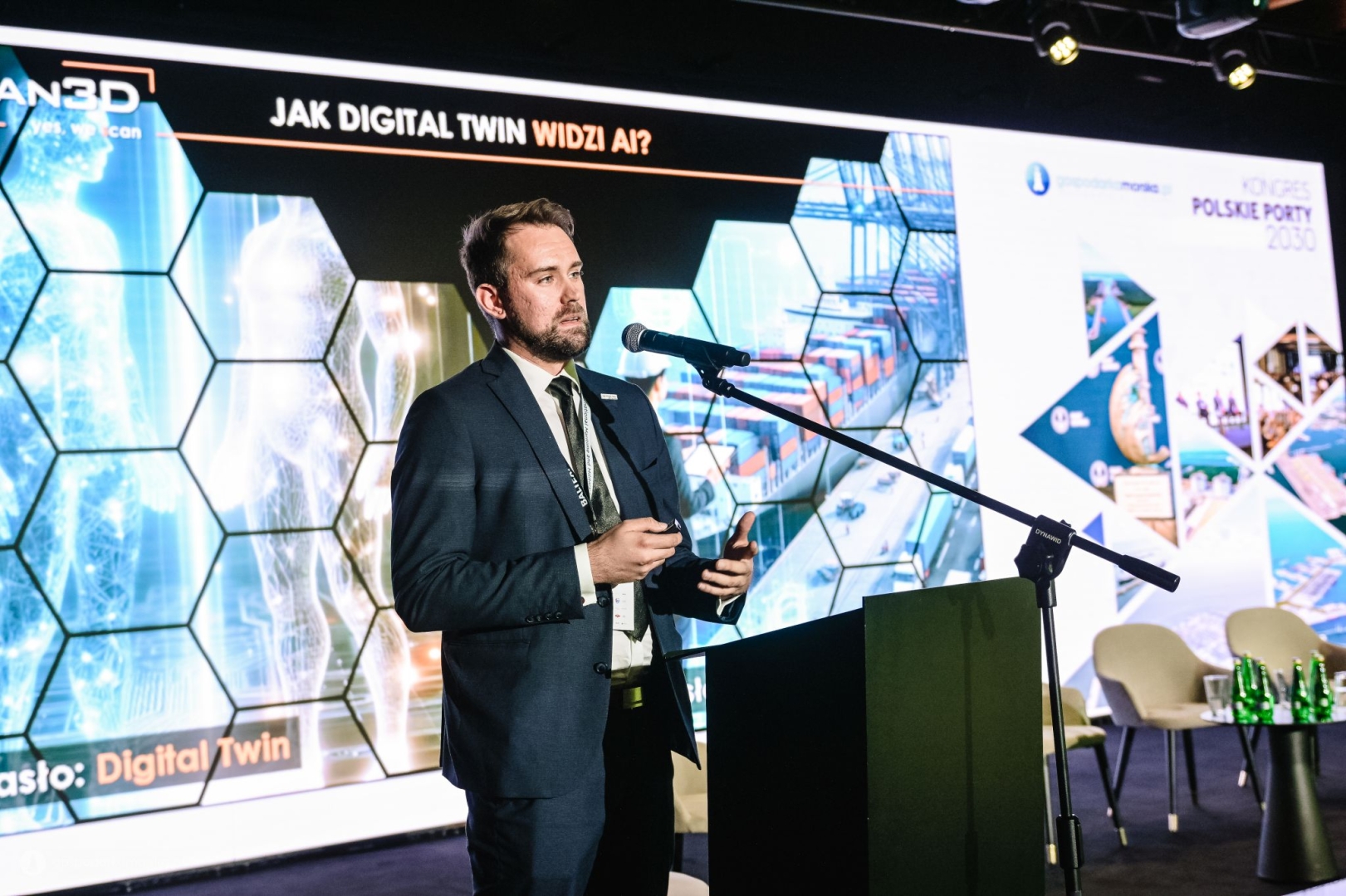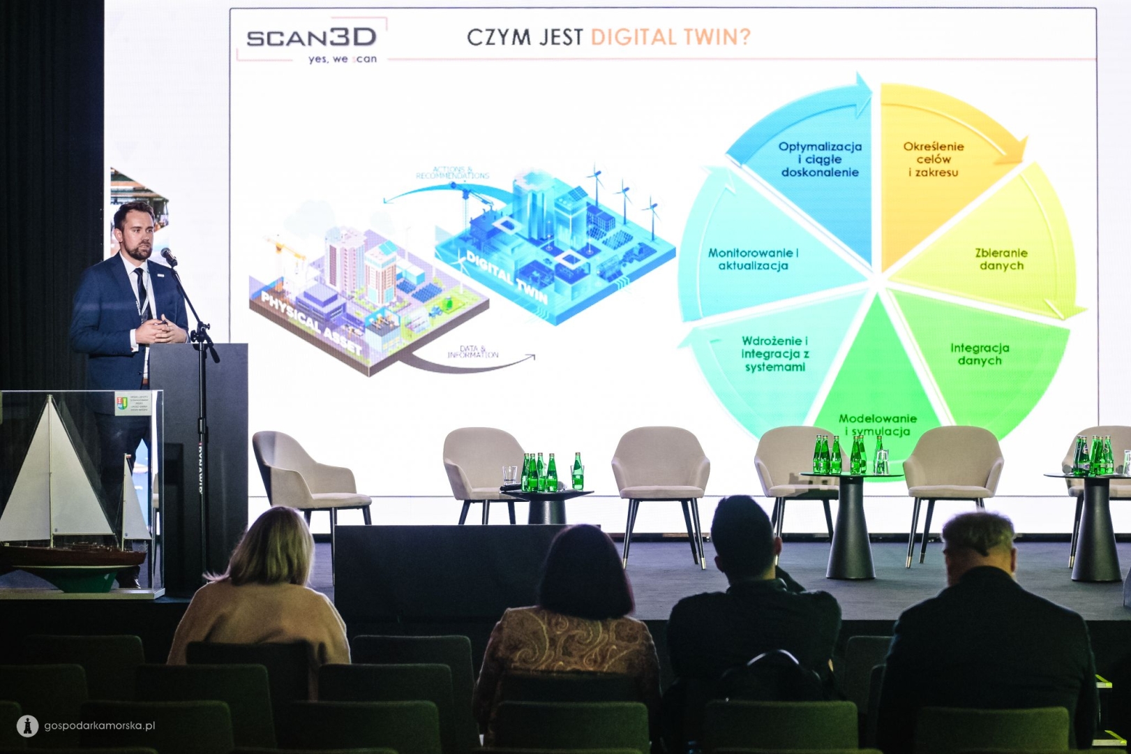 Ostatni panel poprzedziła prezentacja stworzona przez Szymona Blocha, prezentowana przez Michała Racława, przedstawiciela firmy SCAN 3D. Prezentacja dotyczyła tematu Digital Twin, który wiąże się z pozyskiwaniem i modelowaniem danych oraz z tworzeniem symulacji. W prezentacji zahaczono również o porty morskie i sztuczną inteligencję.