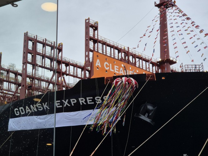 1 listopada w koreańskim Geoje, w stoczni Hanwha Ocean, odbyła się ceremonia nadania imienia nowemu kontenerowcowi armatora Hapag Lloyd – Gdansk Express. Matką chrzestną została Magdalena Adamowicz.