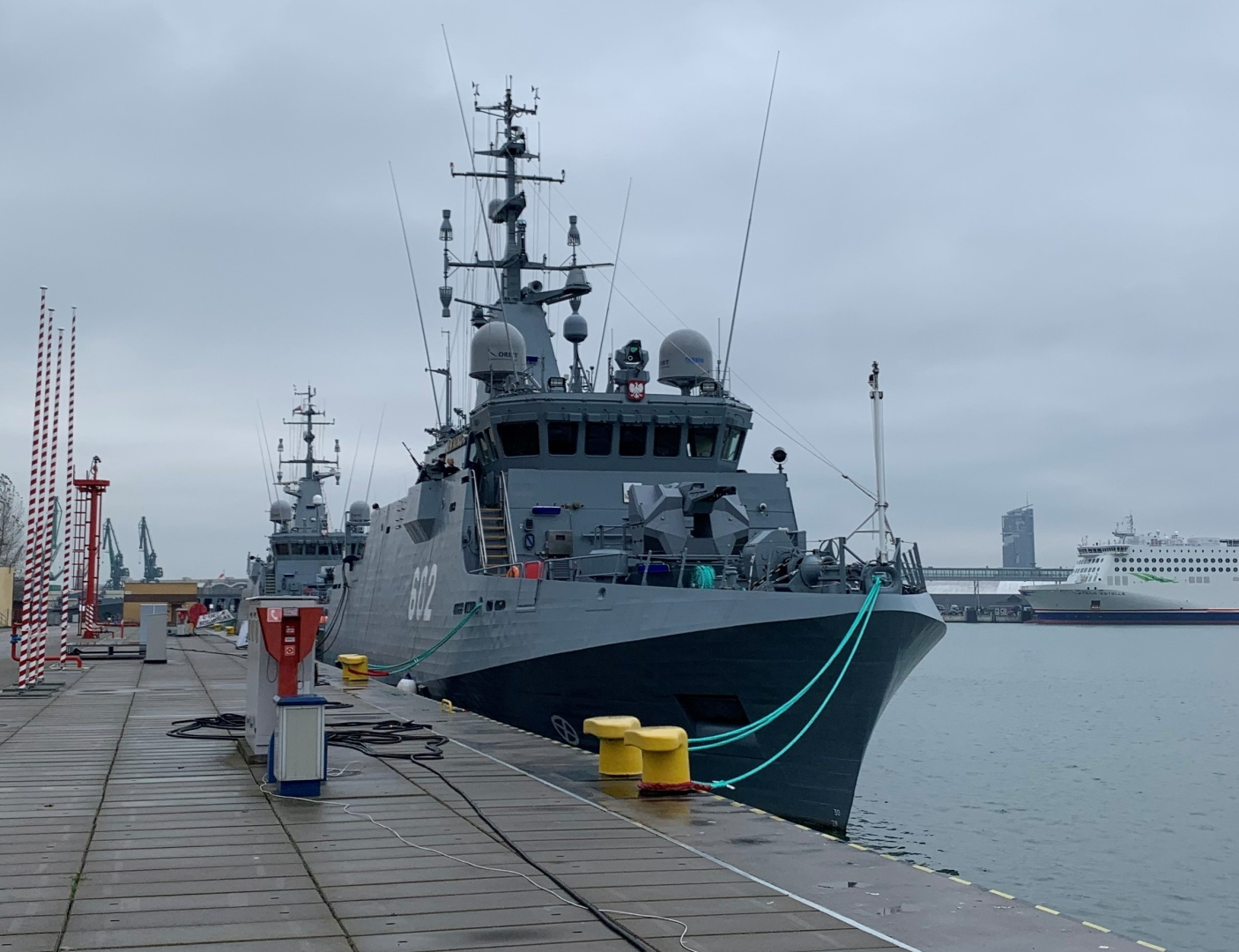 przyszłego ORP Mewa, zwodowanym 17 grudnia 2020 roku, biorącym udział w